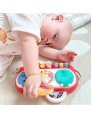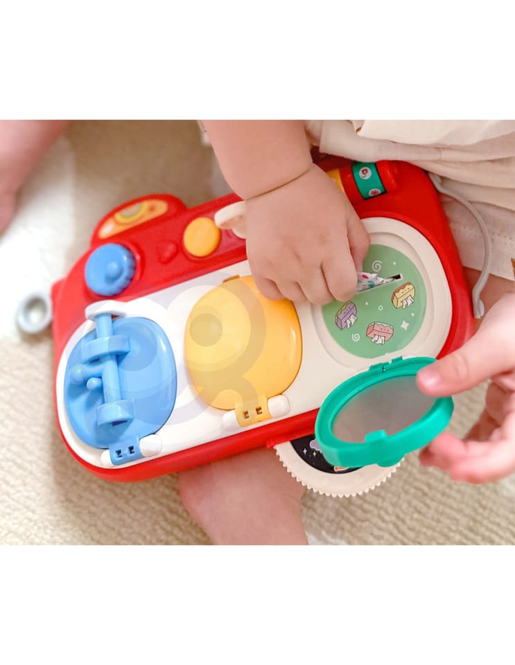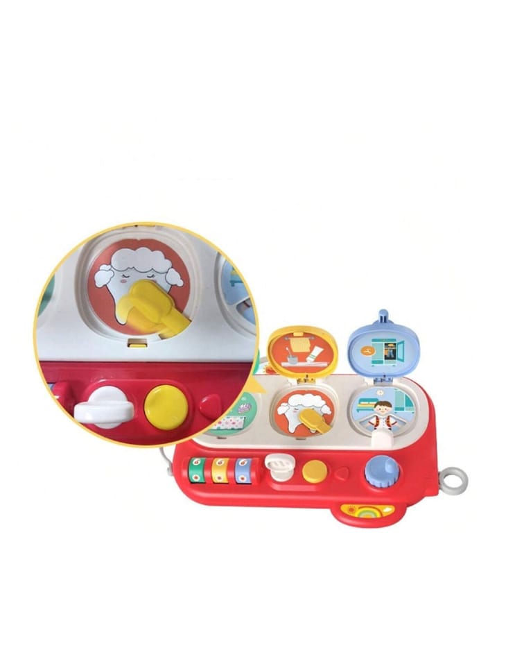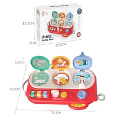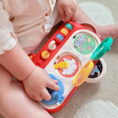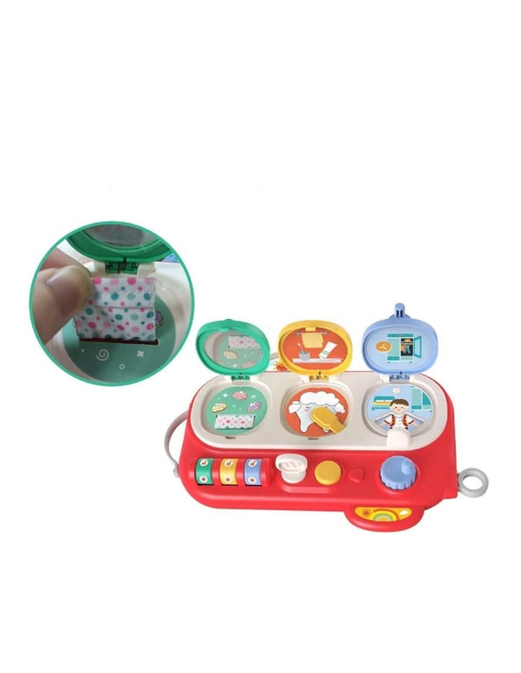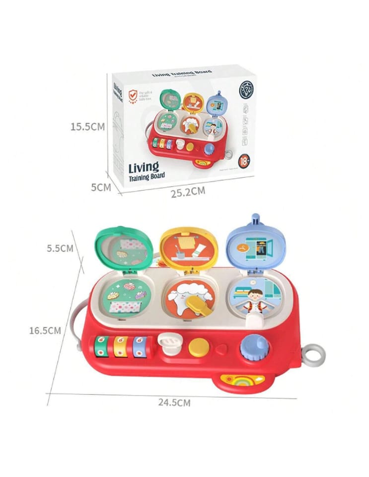 Dziecko odwraca, obraca, wciska i przesuwa różne elementy aby odkryć zawartość każdego okienka. Zabawka pomaga dzieciom rozwijać swoje umiejętności motoryczne, a także uczy je przyczynowo - skutkowego myślenia. Każda akcja ma konkretny efekt, co jest fascynujące dla młodych umysłów i zachęca do dalszej zabawy.