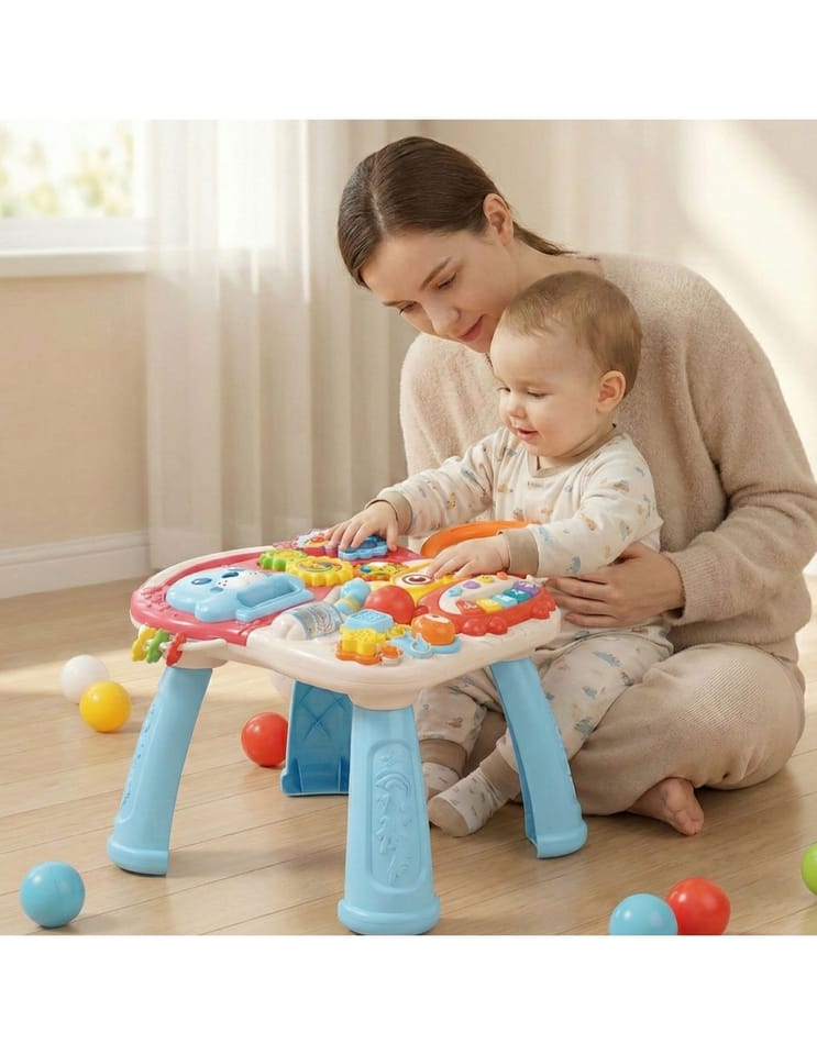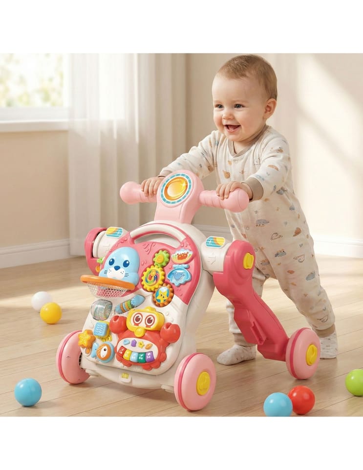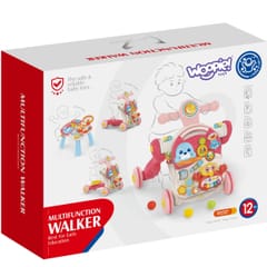 Odkryj nieskończone możliwości zabawy z Wielofunkcyjnym Interaktywnym Jeździkiem 4w1 od marki WOOPIE! Ten edukacyjny pchacz stanie się ulubionym towarzyszem Twojego malucha, podążając za nim krok w krok od pierwszych raczkujących dni, aż do swobodnego przemieszczania. Zabawka jest prawdziwą skarbnicą niespodzianek, które dziecko może samodzielnie odkrywać. Ułatwia to połączenie kilku funkcji w jednej zabawce: pchacza, hulajnogi, jeździka oraz stolika edukacyjnego, co sprawia, że zabawka z pewnością nie znudzi się przez długi czas. Główny panel oferuje mnóstwo atrakcji: krabik-mini-organki dla rozwoju muzycznego, ruchome "drzwiczki" z wesołymi zwierzątkami, obrotowe zębatki, kolorowe klocki na sznurkach do nauki kształtów i kolorów, obrotową grzechotkę, mini liczydło z krążkami i wiele innych. Bezpieczeństwo jest na pierwszym miejscu - zabawka wykonana jest z najwyższej jakości, atestowanych i estetycznych materiałów. Zabawka nie posiada żadnych nierówności czy ostrych krawędzi, gwarantując pełne bezpieczeństwo użytkowania.