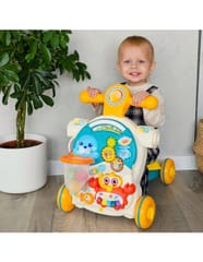 Pchacz Chodzik Woopie Baby 4w1 to uniwersalna zabawka, która łączy funkcje pchacza, chodzika, jeździka oraz stolika edukacyjnego. To idealne rozwiązanie „rośnie razem z dzieckiem” – od pierwszych kroków aż po samodzielną zabawę. Dzięki interaktywnemu panelowi z zabawnymi elementami dziecko samodzielnie odkrywa kolory, kształty i dźwięki. Konstrukcja została wykonana z bezpiecznego tworzywa, bez ostrych krawędzi i z blokadą tylnych kół, zapewniając stabilność.