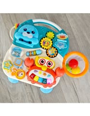 - - Panel edukacyjny z elementami takimi jak mini-organki, zębatki, liczydło, ruchome drzwiczki