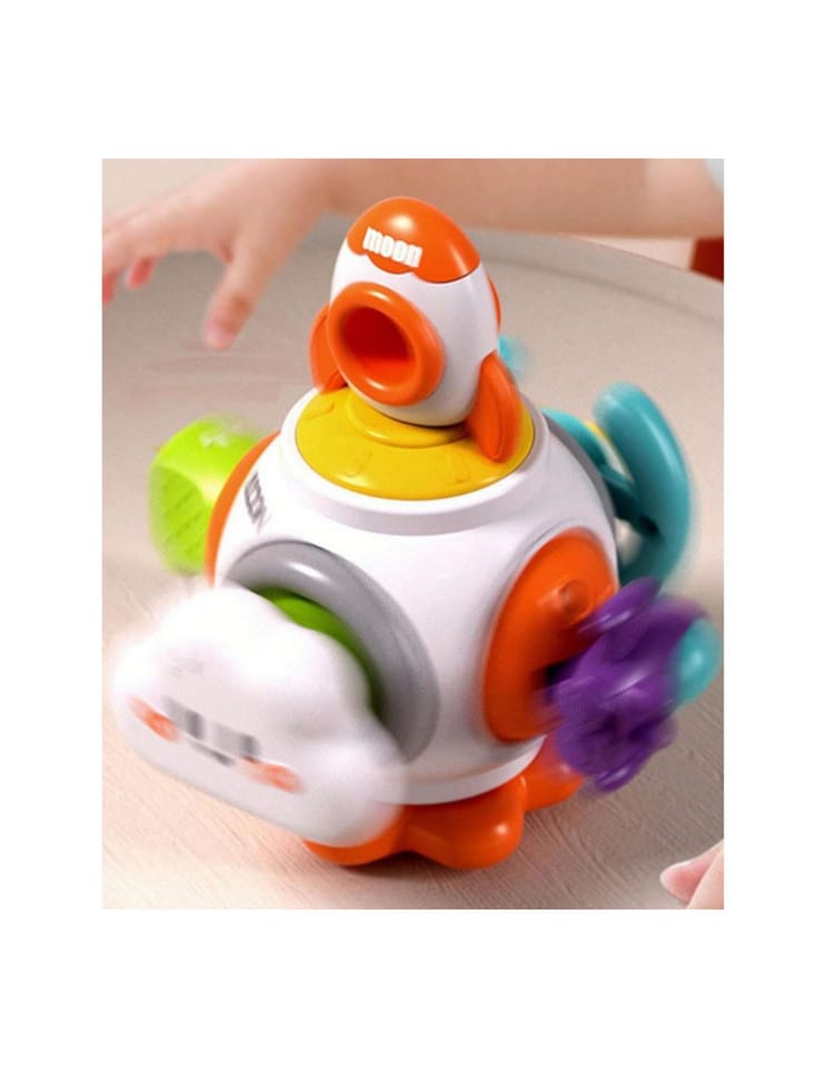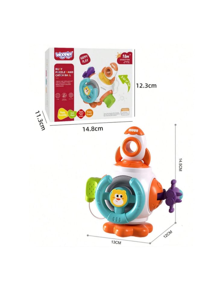 Piłka Kosmiczna Rakieta Montessori od marki WOOPIE to kolorowa, edukacyjna kostka sensoryczna dla dzieci od 18 miesięcy życia. Zawiera sześć paneli aktywności, które stymulują zmysły dziecka i rozwijają umiejętności motoryczne. Elementy takie jak kierownica, przycisk chmura, wtyczka analogowa, zabawki spinner, zabawki rakietowe i zabawki ze statkami kosmicznymi zapewniają różnorodne doświadczenia. Zabawka jest bezpieczna, wykonana z wysokiej jakości materiałów i zaprojektowana z myślą o rozwoju i bezpieczeństwie dziecka.