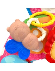 Wielofunkcyjna poduszka interaktywna rogal od marki WOOPIE BABY to rewelacyjny pomysł na pierwszą poduszkę dla twojego dziecka. Grzechotki oraz gryzak są odczepiane, dlatego można wykorzystać je przy wózku, nosidełku, foteliku samochodowym oraz do samodzielnej zabawy. Wygodna do zabawy na brzuszku, a gdy dziecko podrośnie - doskonała podpora podczas siedzenia, czy później jako poduszka podróżna na szyję dziecka- poduszka zrobiona jest tak aby rosła z maluchem i była z nim na różnych etapach życia. Urocza grafika z szeleszczącą podkładką i kolorowymi grzechotkami zapewni wiele wesołej zabawy każdemu maluszkowi. Żywe kolory zwrócą uwagę i wspomogą zdolność rozróżniania kształtów i barw. Grzechotki pozytywnie wpłyną na rozwój słuchu i koordynację rączek- można pozwolić dziecku swobodnie nimi się bawić lub dopiąć do miękkiego wałka. Przede wszystkim marka WOOPIE BABY zaprojektowała poduszkę tak, aby twoje dziecko było bezpieczne i rozwijało się dobrze.