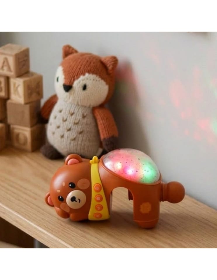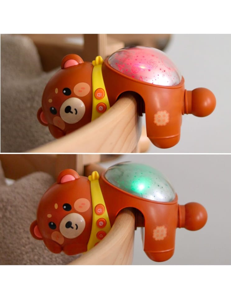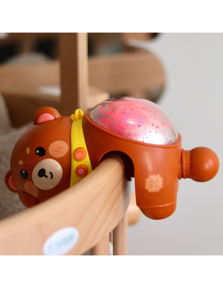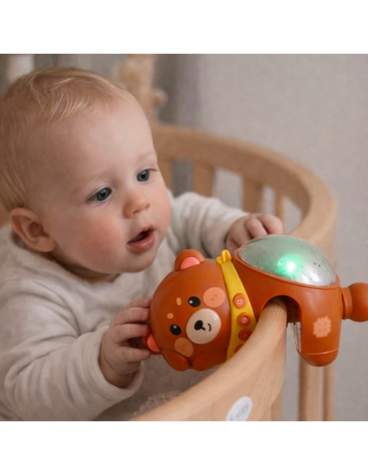 Otul swojego maluszka spokojem i magią nocnego nieba! Uroczy miś-projektor z funkcją lampki nocnej od marki Woopie to wyjątkowa pozycja stworzona z myślą o najmłodszych, które dopiero poznają świat. Dzięki rozświetlającemu się projektorowi gwiazd i wbudowanym kołysankom, ten niepozorny pluszak zamienia dziecięcy pokój w miejsce pełne harmonii i ukojenia. Miś emituje delikatne, zmieniające się światełka, które tworzą przepiękną, rozgwieżdżoną przestrzeń na suficie. Z kolei łagodne melodie i uspokajające dźwięki pomagają wprowadzić dziecko w stan relaksu i wspierają naturalny proces zasypiania. Obły kształt misia, jego przyjazny wygląd oraz bezpieczne materiały sprawiają, że jest nie tylko funkcjonalny, ale i pełen ciepła. Dzięki wklęsłej przestrzeni projektor można osadzić na barierkach łóżeczka, lub po prostu położyć go na płaskiej powierzchni. Dzięki 20 kojącym melodiom i 6 białym szumom, zabawka pozwala dopasować dźwięki do nastroju i potrzeb dziecka. Funkcja regulacji głośności umożliwia dostosowanie poziomu dźwięku do warunków w pomieszczeniu i wieku dziecka. Miś działa na 3 baterie typu AA (brak w zestawie), co zapewnia mobilność i bezpieczeństwo użytkowania – bez kabli, bez ryzyka.