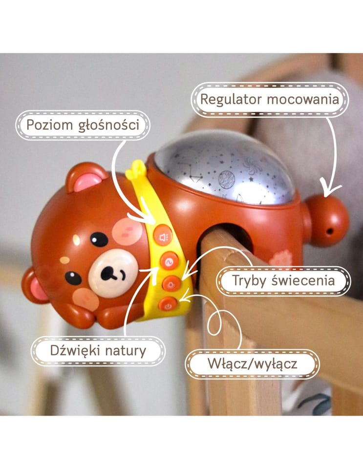 - - Przyjazny design – postać śpiącego misia o łagodnym, kojącym wyrazie