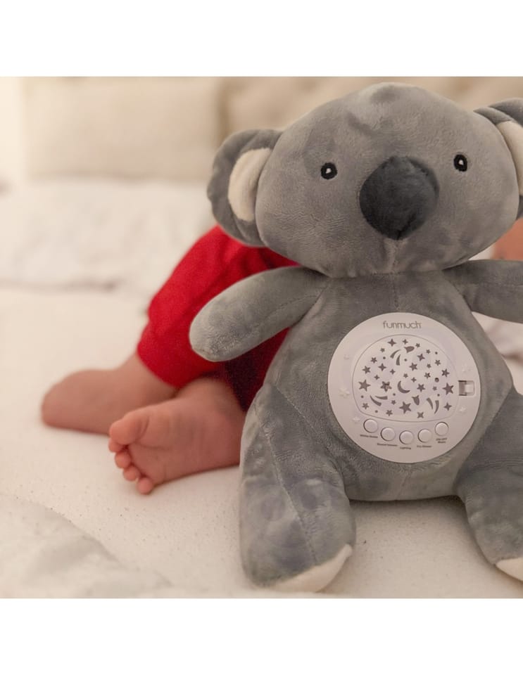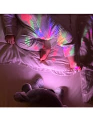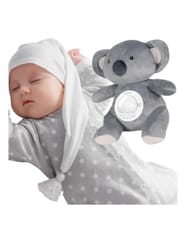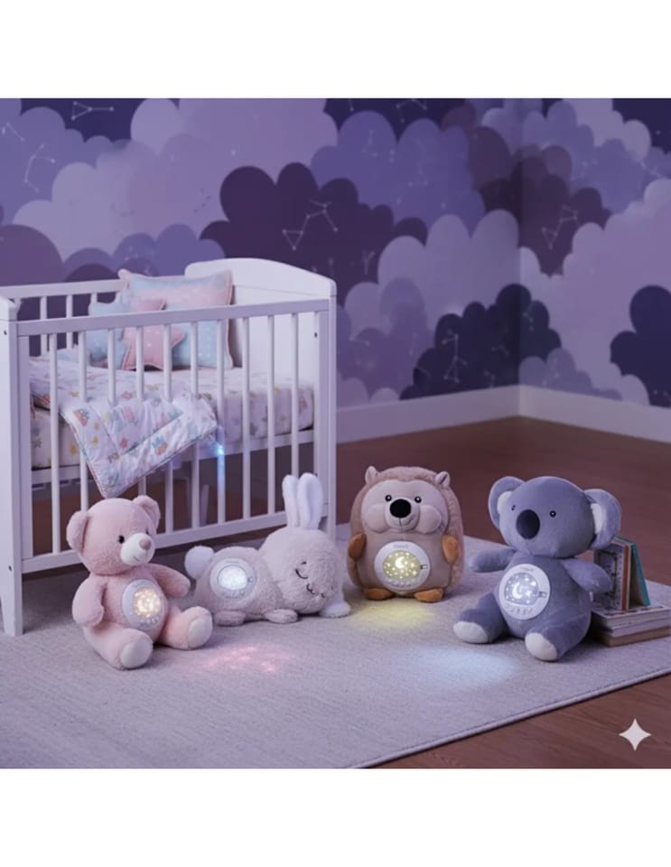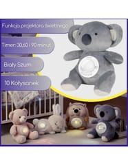 Mięciutki Miś Polarny z Projektorem od marki Woopie to idealny towarzysz snu dla każdego maluszka. Ta urocza przytulanka, wykonana z bezpiecznej, bawełnianej tkaniny, łączy w sobie funkcje projektora świetlnego i uspokajacza z muzyką. Miś pomaga ukoić dziecko do snu, emitując na suficie gwieździste niebo z księżycami w 7 różnych efektach świetlnych. Moduł dźwiękowy oferuje bogatą gamę uspokajających dźwięków: 10 delikatnych kołysanek oraz 5 rodzajów białego szumu. Moduł ma wbudowany timer z trzema opcjami czasu (30, 60 lub 90 minut), a także funkcję pętli (Loop) do ciągłego odtwarzania. Dodatkową zaletą jest możliwość prania misia w pralce (po wyjęciu modułu elektronicznego).