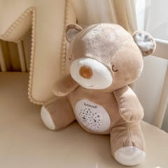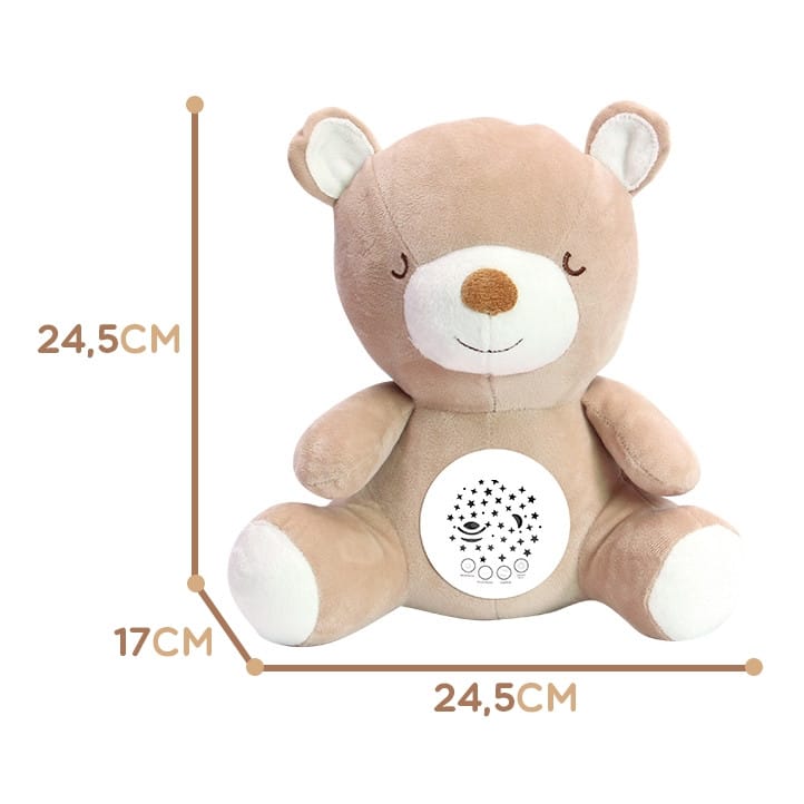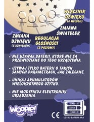 Pluszowy Usypiacz Miś od marki Woopie, będzie uroczym towarzyszem snu Twojego maluszka. Maskotka jest idealna dla niemowląt i starszych dzieci, które nie lubią same zasypiać. Misio będzie idealnym przyjacielem dobrych snów i wybawcą od potworów z szafy. Przytulanka posiada 4 funkcje. Gdy ją włączymy usłyszymy melodie, a brzuszek zacznie mienić się różnymi kolorami. Po naciśnięciu przycisku " White Nose" usłyszymy różne szumy czy bicie serduszka. Zabawka posiada, również aż 10 różnych kołysanek oraz możliwość ustawienia 3 poziomów głośności, aby móc dostosować dźwięk do upodobań maluszka i mieć pewność, że nie obudzi się podczas snu. Zabawka jest przystosowana dla niemowląt, dlatego jest wypełniona miękką watą. Dodatkowo pluszaka można bezpiecznie oraz łatwo czyścić, wyjmując mechanizm i łatwo go potem montując. Dzięki temu również starsze dziecko będzie mogło używać zabawki jako maskotki bez mechanizmu. Każde dziecko zakocha się w misiu!