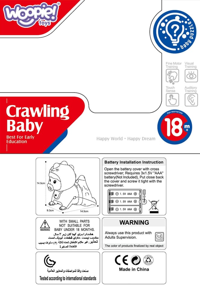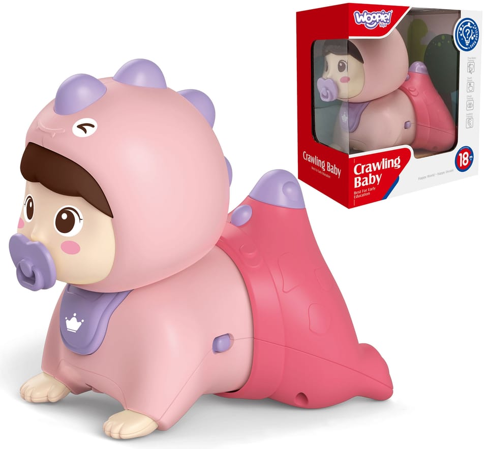 Raczkujący Bobas od marki WOOPIE to radosny bobasek, który został stworzony z myślą o dzieciach w wieku powyżej 18 miesięcy. Zabawka zachęca dzieci do podążania jego śladami przez co dziecko rozwija motorykę. Dla urozmaicenia zabawy Bobas jest wyposażony w melodyjkę stymulującą zmysł słuchu, a także efekty świetlne pobudzające zmysł wzroku. Produkt jest bezpieczny dla dziecka, nie posiada ostrych krawędzi jest wykonany z trwałego tworzywa. Świetnie spełni rolę jako przyjaciel dla Twojego malucha.