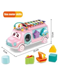 - - Zabawka łączy w sobie funkcję autka do jeżdżenia, muzycznych cymbałków oraz edukacyjnego sortera kształtów.