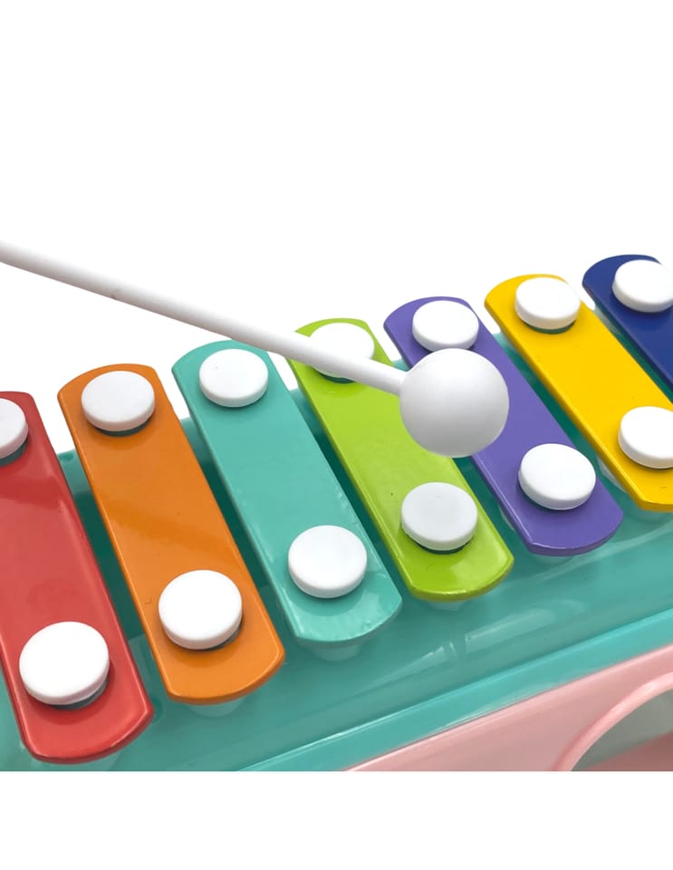 - - funkcja 3w1: samochodzik do ciągnięcia, sorter kształtów oraz kolorowe cymbałki