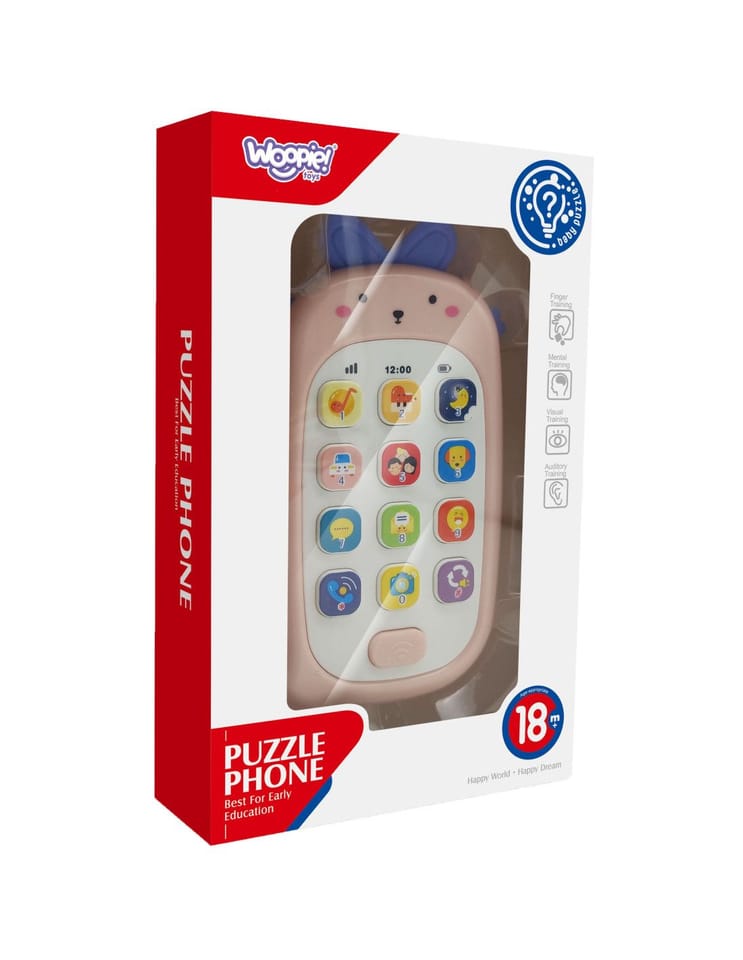 Telefon interaktywny od marki WOOPIE to niesamowity towarzysz zabaw dla Twojego malucha. Nie tylko posiada atrakcyjny i nowoczesny wygląd, ale także oferuje szereg interakcji, które naśladują funkcje prawdziwego telefonu komórkowego. Dźwięki instrumentów muzycznych, melodie kołysanek, odgłosy samochodu, uroczystości, wiadomości SMS, dźwięki zwierząt, śmiech, dzwonki przychodzące i odgłosy robienia zdjęć - wszystko to znajduje się w jednym urządzeniu! Co więcej, ta zabawka posiada przyciski do regulacji głośności i włączania/wyłączania oraz tryb dyktafonu, co z pewnością zwiększy radość z zabawy. Pozwoli to Twojemu dziecku na stymulację różnych zmysłów, takich jak słuch, percepcja i interakcja poznawcza.Charakterystyka produktu:- zabawka od 18 miesiąca życia,- nietoksyczna i bezpieczna - nie zawiera ftalanów,- odtwarza różnorodne dźwięki i melodie,- posiada przyciski do regulacji głośności i włączania/wyłączania,- oferuje tryb dyktafonu