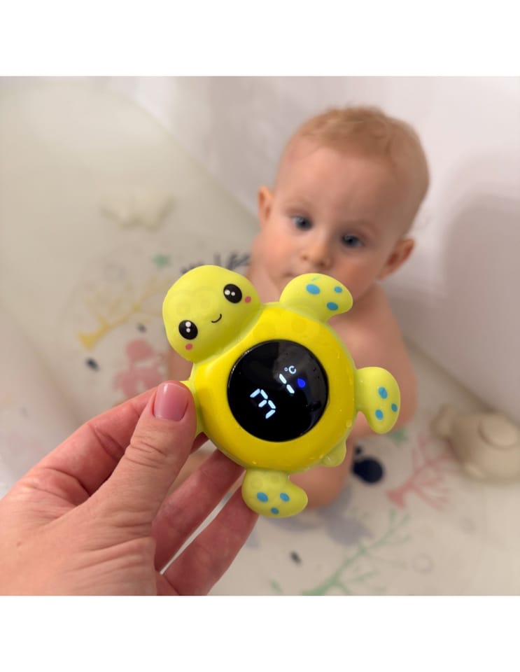 Zadbaj o bezpieczeństwo i komfort Twojego dziecka podczas każdej kąpieli! Uroczy termometr w kształcie żółwia sprawi, że pomiar temperatury stanie się zabawą. Przeznaczony do używania zarówno w wannie, basenie, jak i do mierzenia temperatury w pokoju. Wyposażony w czytelny wyświetlacz cyfrowy i funkcję kolorystycznego ostrzegania o temperaturze.