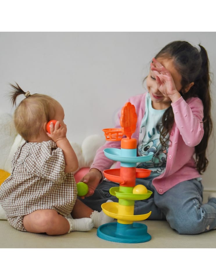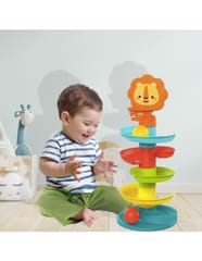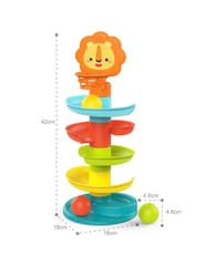 Zjeżdżalnia-Tor Piłeczek o pięciu poziomach z lewem-koszem od marki WOOPIE to idealny prezent dla Twojego dziecka! W trakcie zabawy maluch poznaje zasady działania kształtów kulistych na pochyłych powierzchniach. Wewnątrz kulek znajdują się drobne elementy, które wydają dźwięki podczas turlania się, dostarczając dodatkowych wrażeń sensorycznych. Zjeżdżalnia posiada pięć kolorowych poziomów, które musi pokonać położona przez dziecko piłeczka. Na górze znajduje się sympatyczny lew z koszem, do którego dziecko będzie próbować trafić, rozwijając tym samym swoje zdolności manualne, koordynację oraz celność. Zabawka jest wykonana z bezpiecznego i atestowanego plastiku. To wspaniały sposób na naukę poprzez zabawę!