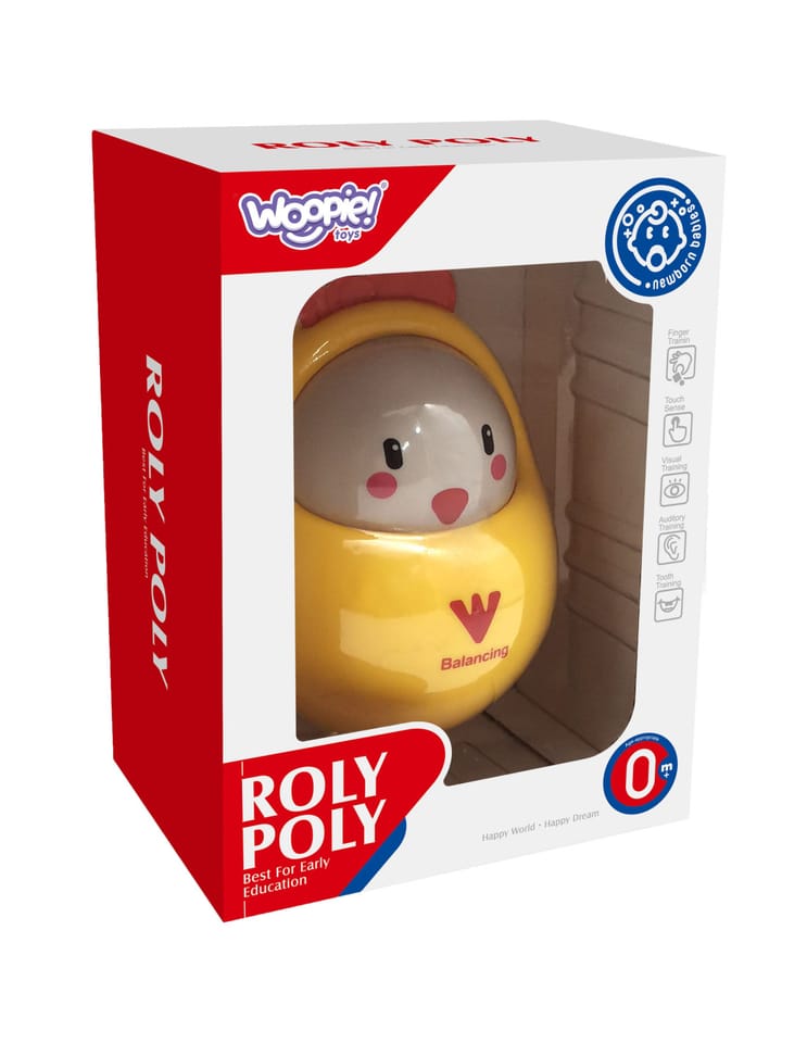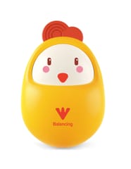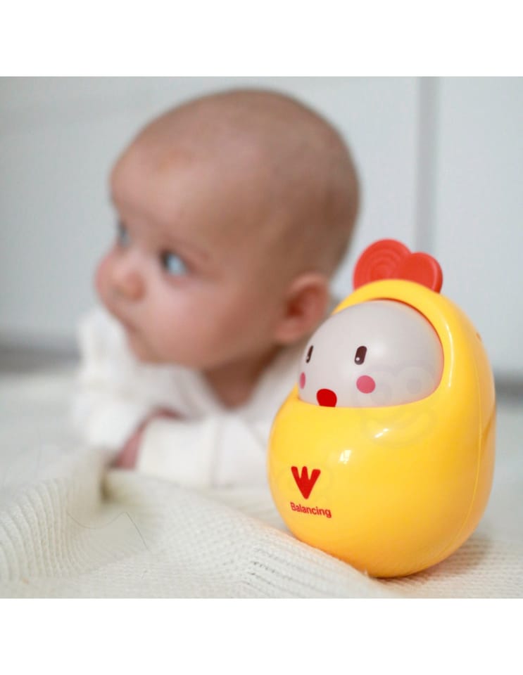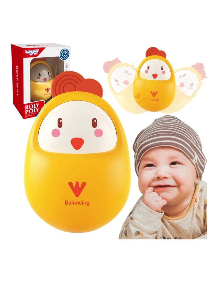 Kurczak Z Melodyjkami Wańka Wstańka od marki WOOPIE Baby to sensoryczna kiwajka, która zapewnia maluchowi radosną zabawę i stymuluje naturalny rozwój już od pierwszych chwil życia. Ta urocza zabawka buja się bez przewracania się po lekkim popchnięciu, a melodie wydawane podczas ruchu przyciągają uwagę dziecka i zachęcają do interakcji. Kolorowe wzornictwo oraz przyjazne dźwięki angażują zmysły wzroku i słuchu, a kołysanie wspiera malucha w ćwiczeniu równowagi i koordynacji. Dzięki solidnej konstrukcji i bezpiecznym, gładkim krawędziom rodzic może spokojnie obserwować pierwsze zabawy dziecka. To idealna propozycja zabawki sensorycznej – zarówno jako codzienny towarzysz zabawy, jak i przyjazny prezent dla niemowlaka!