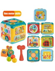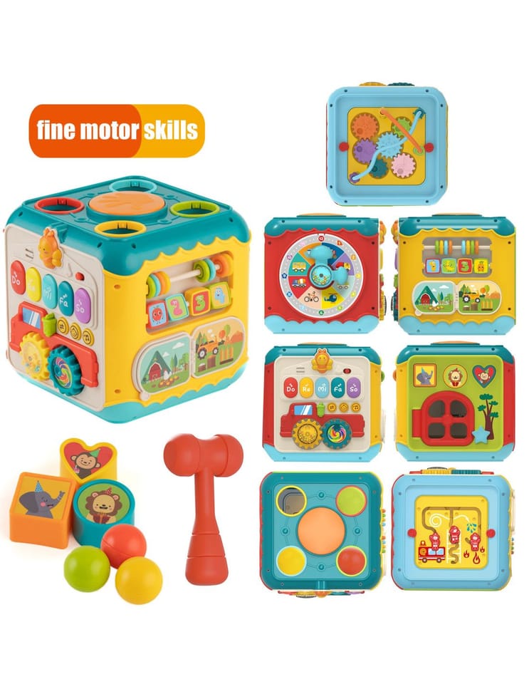 - - Wiele funkcji: 6w1 pianinko, sorter, labirynt, wbijak z młoteczkiem, przeplatanka i drzwiczki z zamkiem