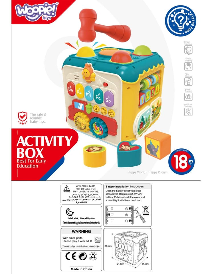 Wielofunkcyjna Kostka Aktywności 6w1 Montessori od Woopie Baby to idealna zabawka dla dzieci od około 18 miesiąca życia. Każda ścianka kostki oferuje inną aktywność: pianinko, sorter, labirynt, wbijak z młoteczkiem, przeplatanka i drzwiczki z zamkiem. Zabawka pobudza ciekawość i umożliwia dziecku eksperymentowanie z kolorami, kształtami i dźwiękami.To świetny pomysł na prezent – uniwersalna i rozwijająca zabawka, która wspiera wiele zmysłów dziecka.