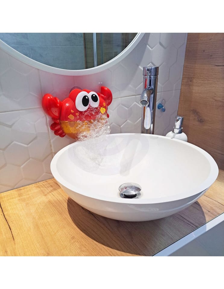 Wesoły Krab do robienia piany od marki WOOPIE będzie super zabawą dla dziecka, bo każde dziecko uwielbia pianę podczas kąpieli w wannie! Zabawka jest prosta w użyciu. Należy napełnić kraba mieszanką wody oraz płynu do mycia i zamontować na przyssawki w bezpiecznej odległości od lustra wody (zabawka nie jest wodoodporna! Uważaj, aby nie zamoczyć i zalać). Następnie wystarczy włączyć przyciskiem ON i gotowe, zabawka automatycznie wypuszcza puszystą pianę. Wszystkiemu towarzyszą efekty dźwiękowe w postaci wesołej melodii (melodię można wyłączyć w każdym momencie). Zabawka skutecznie umili czas i zachęci do kąpieli każde dziecko.