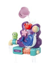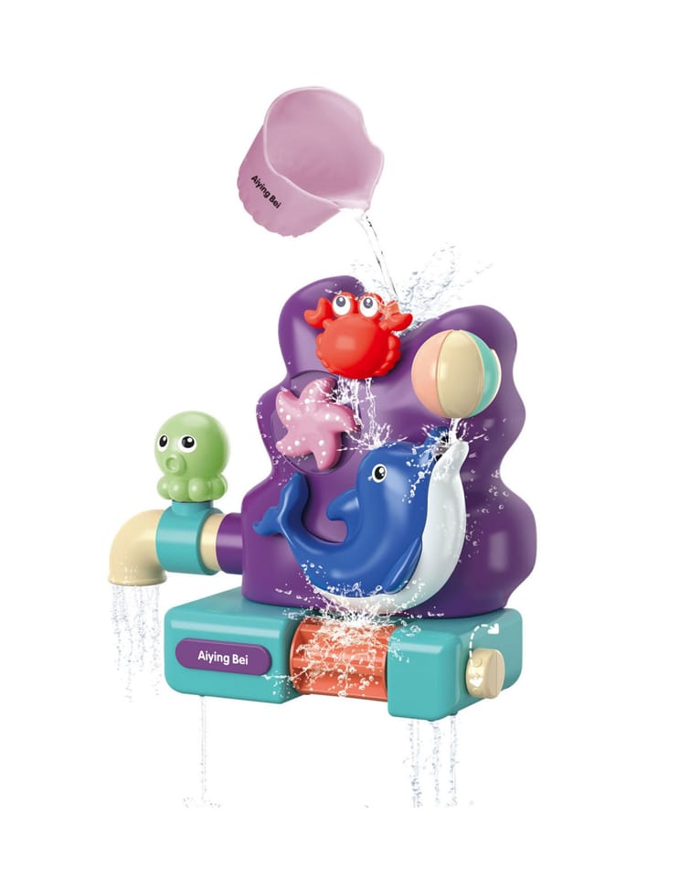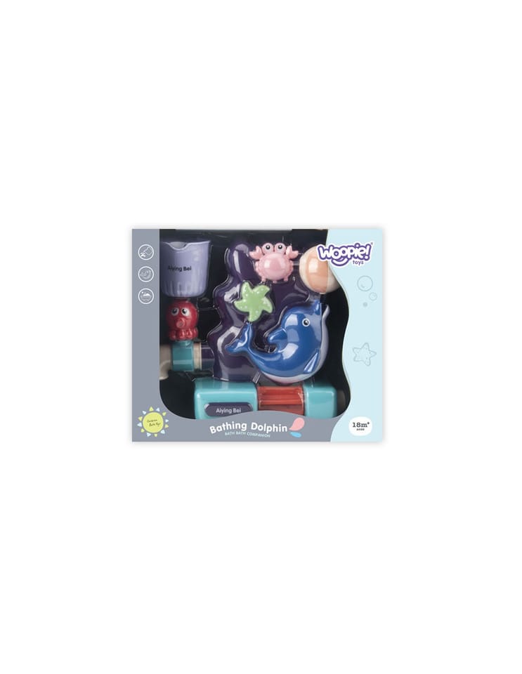 Zabawka Wodna Zwierzątka od marki WOOPIE zapewni dziecku dużo zabawy podczas kąpieli. Dziecko za pomocą kubeczka wlewa wodę do zbiornika od góry. Wylana woda ścieka do kolejnych figurek: najpierw na kraba, następnie na rozgwiazdę, a na koniec na delfina. Na końcu trasy woda wylewa się strumieniem z kraniku po lewej stronie oraz na kołowrotek pod delfinem, co wprawia go w ruch. Dziecko kółeczkiem z prawej strony może sterować szybkością kręcenia się kołowrotka. Zabawka posiada 3 przyssawki z tyłu, dzięki czemu można przyczepić ja do ściany w łazience lub do wanny. Zabawka nie tylko umili czas podczas kąpieli, ale również rozwinie wyobraźnię, zdolności manualne, a przede wszystkim pozwoli dziecku skupić się i zająć czymś podczas mycia.