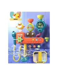 Zabawa polega na przelewaniu wody przez różne elementy. Każda z trzech kaczuszek-nakładek generuje inny efekt: jedna tworzy fontannę, druga wprawia w ruch młynek wodny, a trzecia działa jak klasyczne sitko/prysznic. To doskonały sposób na oswojenie malucha z wodą i zachęcenie go do codziennej higieny poprzez radosną zabawę.