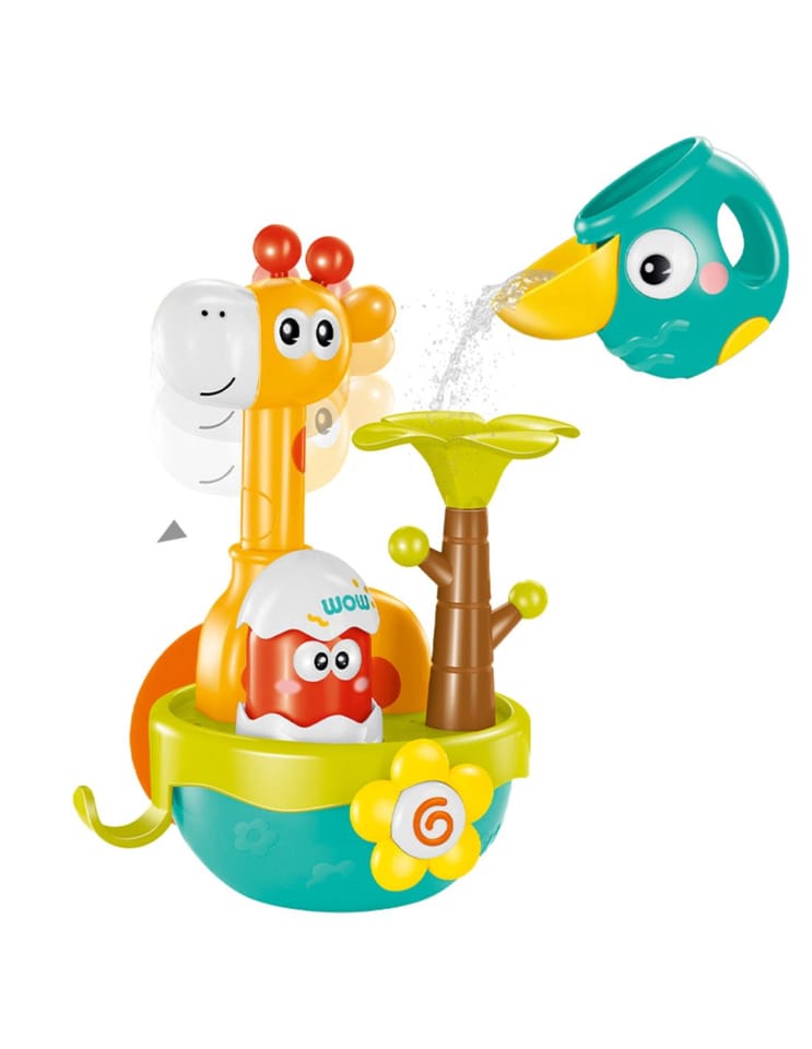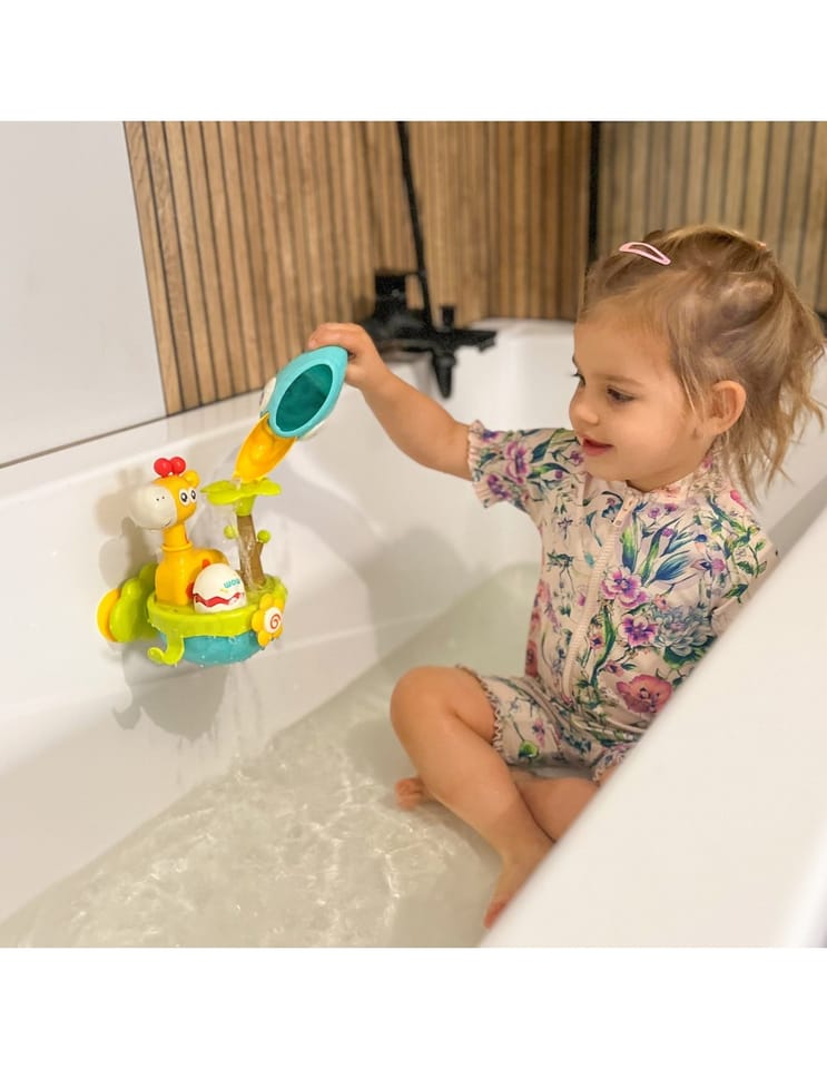 Zmień codzienną kąpiel w fascynującą przygodę z zabawką do kąpieli Żyrafa! Ta urocza zabawka to gwarancja, że Twoje dziecko nie będzie płakać pod prysznicem. Żyrafa mocuje się do wanny za pomocą przyssawki i służy do przelewania wody. W zestawie znajduje się lejek w kształcie kaczuszki, którym dziecko może napełniać zbiornik żyrafy. Po wlaniu wody uruchamia się efekt wodospadu, a z czerwonej postaci w skorupce wysuwa się głowa , co zapewnia dodatkową frajdę. Zabawka jest łatwa do przechowywania dzięki wbudowanemu uchwytowi/haczykowi, co pomaga w kształtowaniu dobrych nawyków porządkowych.