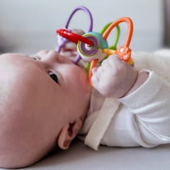 Zabawka sensoryczna od marki Woopie jest idealna dla małego ząbkującego dziecka. Składa się z miękkich, zachwycających kolorem rurek które przykuwają uwagę dziecka. Lekka konstrukcja sprawia, że maluch z łatwością trzyma ją w rączce. Skonstruowana została w sposób bezpieczny dla dziecka bez ostrych krawędzi i posiada miękkie elementy, które mogą być wykorzystywane jako gryzak. Poprzez zabawę z nią wpływa na rozwój zmysłów dotyku, wzroku i słuchu. Zawiera w sobie grzechotkę, która może przyciągnąć uwagę. Na giętkich zawijasach można przesuwać umieszczone kolorowe elementy. Zabawkę można przechowywać w lodówce, aby zapewnić lepszą ulgę obolałych dziąseł dziecka ząbkującego.