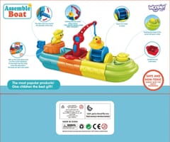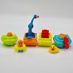 Kolorowa łódź marki Woopie to zabawka umilająca kąpiel dzieciom. Wykonana w formie wielobarwnej łodzi z pasażerami- żółwiem i kaczką. Statek składa się z kilku części. Wyposażony jest w dźwig z hakiem na który możemy zaczepić kaczuszkę, młynek wodny oraz armatkę.
