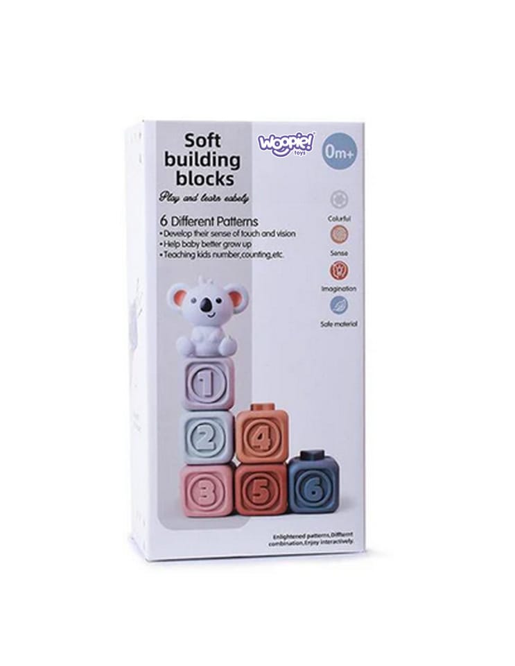 Ten kreatywny zestaw pastelowych klocków z cyferkami od marki WOOPIE jest idealnym wyborem dla najmłodszych dzieci, oferując wiele możliwości edukacyjnych i sensorycznych. Każdy z sześciu klocków wprowadza malucha w świat liczb, jednocześnie rozwijając różne zmysły i umiejętności. Klocki sensoryczne wykonane są z miękkiego, przyjaznego dla dziecka materiału, dzięki czemu mogą pełnić funkcję gryzaka, co przynosi ulgę podczas ząbkowania. Dodatkowo, te wszechstronne klocki mogą towarzyszyć dziecku również podczas kąpieli, dostarczając wiele radości w wodzie. Dzięki wypukłym, dużym liczbą zabawka ułatwia dzieciom pierwsze poznawanie liczb. Zabawka jest wszechstronna, można układać z niej wysoką wieżę, uczyć się liczb a także użyć jako bezpieczny dla dzieci gryzak.