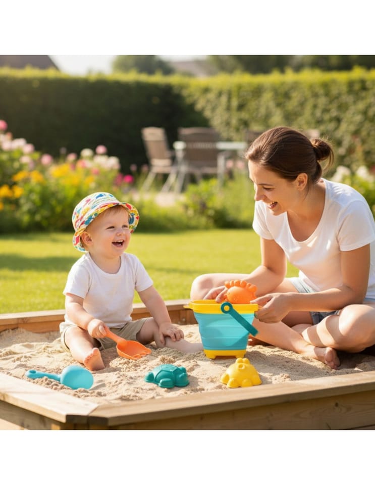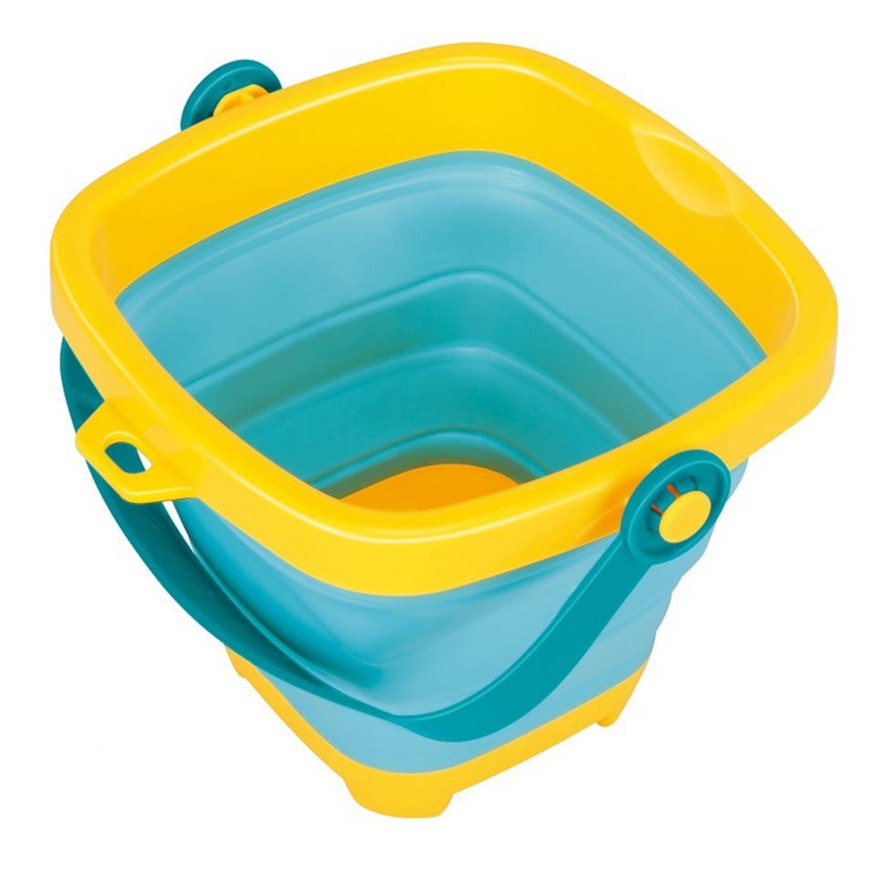 Silikonowe wiaderko z grabkami, łopatką i foremkami od marki WOOPIE. Fantastyczne wiaderko do piaskownicy, na plażę lub do ogrodu, dzięki któremu dzieci miło spędzą czas na świeżym powietrzu. Wiaderko, dzięki składanej konstrukcji, zajmuje niewiele miejsca, jest łatwe w transporcie i wygodne do przechowywania. W zestawie dołączone są trzy foremki do piasku. Zestaw zmieści się do dziecięcego plecaczka, do wózka czy plażowej torby. Góra, spód i rączka wiaderka są plastikowe, a ścianki wykonane są z grubego silikonu składanego harmonijkowo. Plastikowe są również grabki i łopatka.