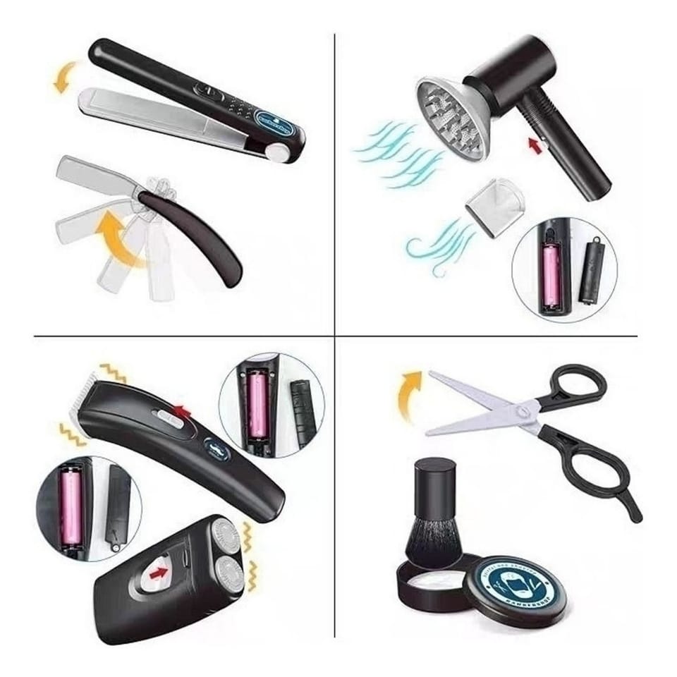 Wejdź do świata stylizacji z zestawem BARBER SET od marki WOOPIE! Ten kompletny zestaw fryzjerski pozwoli Twojemu dziecku wcielić się w rolę prawdziwego stylisty. Suszarka, która dmucha powietrzem, oraz wibrująca maszynka do włosów sprawią, że zabawa będzie niezwykle realistyczna i wciągająca. Do zestawu dołączono również terminal płatniczy i akcesoria, co pozwoli na odegranie scenek z salonu fryzjerskiego.