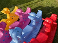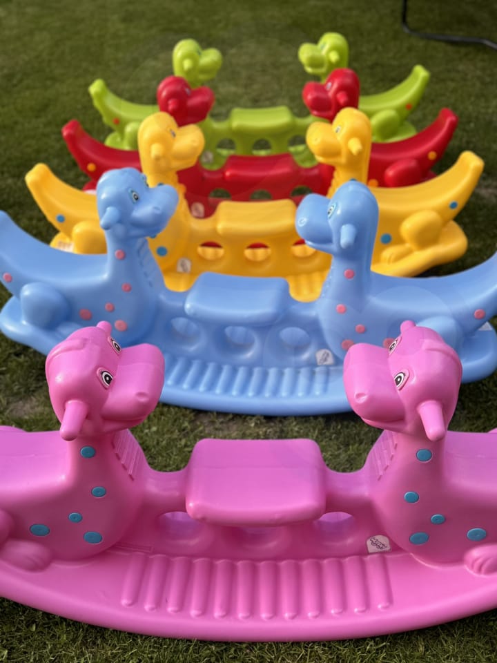 Bujak Dino Wieloosobowy w kolorze niebieskim marki Woopie stanie się najulubieńszym dinozaurem twoich dzieci! Z bujaka może korzystać troje dzieci jednocześnie, a nawet jedno będzie się świetnie bawić! Gdy dwoje dzieci buja się jednocześnie to Dino może spełnić funkcje huśtawki równoważnej i dzieci współpracując mogą się huśtać bez końca. Bujak sam w sobie dostarcza wiele korzyści dla dzieci: bujanie uspokaja dziecko oraz rozwija zdolności motoryczne ciała, co jest idealne dla prawidłowego rozwoju. Dodatkowo dinozaury mogą oddziaływać na wyobraźnie oraz kreatywność Twojego dziecka. Możliwe, że potraktuję go jak swojego przyjaciela, o którego będzie dbać. Z produktu można korzystać zarówno w domu jak, i na zewnątrz!