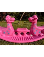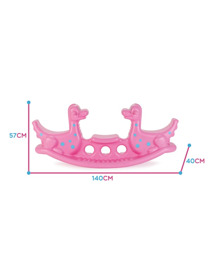 Bujak Dino Wieloosobowy w kolorze różowym marki Woopie stanie się najulubieńszym dinozaurem twoich dzieci! Z bujaka może korzystać troje dzieci jednocześnie, a nawet jedno będzie się świetnie bawić! Gdy dwoje dzieci buja się jednocześnie to Dino może spełnić funkcje huśtawki równoważnej i dzieci współpracując mogą się huśtać bez końca. Bujak sam w sobie dostarcza wiele korzyści dla dzieci: bujanie uspokaja dziecko oraz rozwija zdolności motoryczne ciała, co jest idealne dla prawidłowego rozwoju. Dodatkowo dinozaury mogą oddziaływać na wyobraźnie oraz kreatywność Twojego dziecka. Możliwe, że potraktuję go jak swojego przyjaciela, o którego będzie dbać. Z produktu można korzystać zarówno w domu jak, i na zewnątrz!