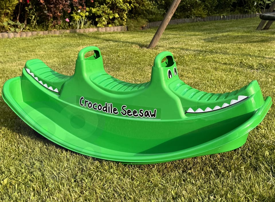 Bujak Wieloosobowy Krokodyl marki Woopie jest prawdziwą gwiazdą wśród dzieci! Z bujaka może korzystać maksymalnie dwoje dzieci jednocześnie, a nawet jedno będzie się świetnie bawić. Gdy dzieci bujają się we dwójkę to dodatkowo rozwija u nich zdolności do współpracy. Bujaczek posiada wygodne rączki do trzymania. Bujak sam w sobie dostarcza wiele korzyści dla dzieci. Bujanie samo w sobie uspokaja dziecko oraz rozwija zdolności motoryczne ciała, co jest idealne dla prawidłowego rozwoju. Z huśtawki można korzystać zarówno w domu jak, i na zewnątrz!Charakterystyka: