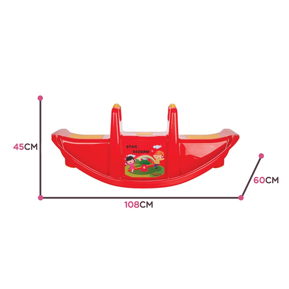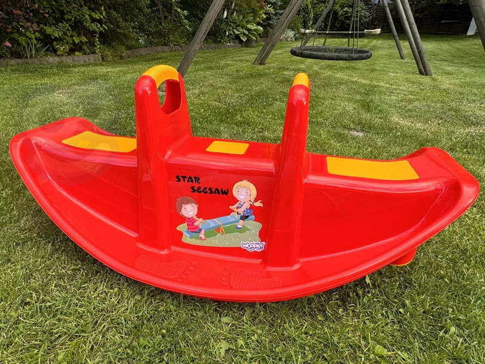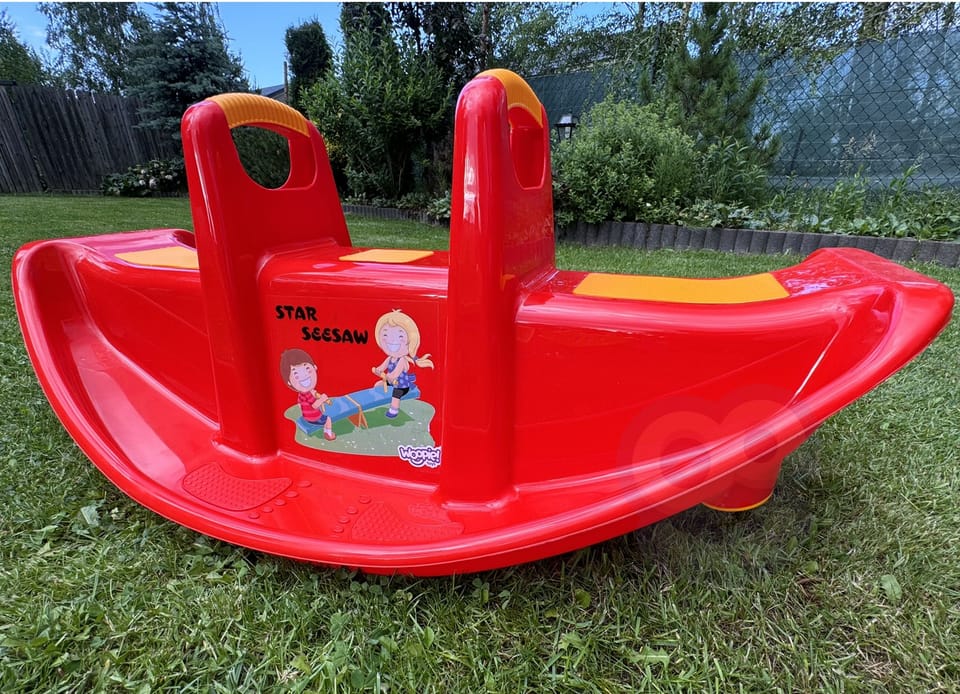 Bujak Wieloosobowy STAR Czerwony marki Woopie jest prawdziwą gwiazdą wśród dzieci! Z bujaka może korzystać maksymalnie troje dzieci jednocześnie, a nawet jedno będzie się świetnie bawić. Gdy dzieci bujają się we dwójkę to dodatkowo rozwija u nich zdolności do współpracy. Bujaczek posiada specjalne nakładki antypoślizgowe na siedzisko oraz chroniące rączki. Bujak sam w sobie dostarcza wiele korzyści dla dzieci. Bujanie samo w sobie uspokaja dziecko oraz rozwija zdolności motoryczne ciała, co jest idealne dla prawidłowego rozwoju. Z huśtawki można korzystać zarówno w domu jak, i na zewnątrz!Charakterystyka: