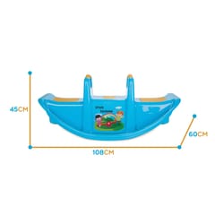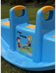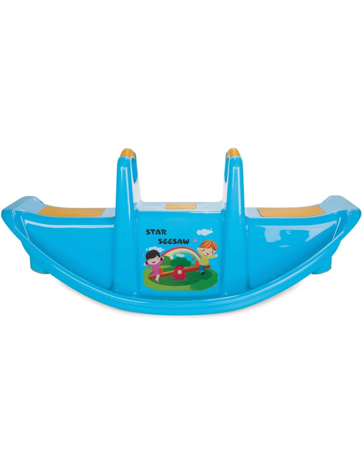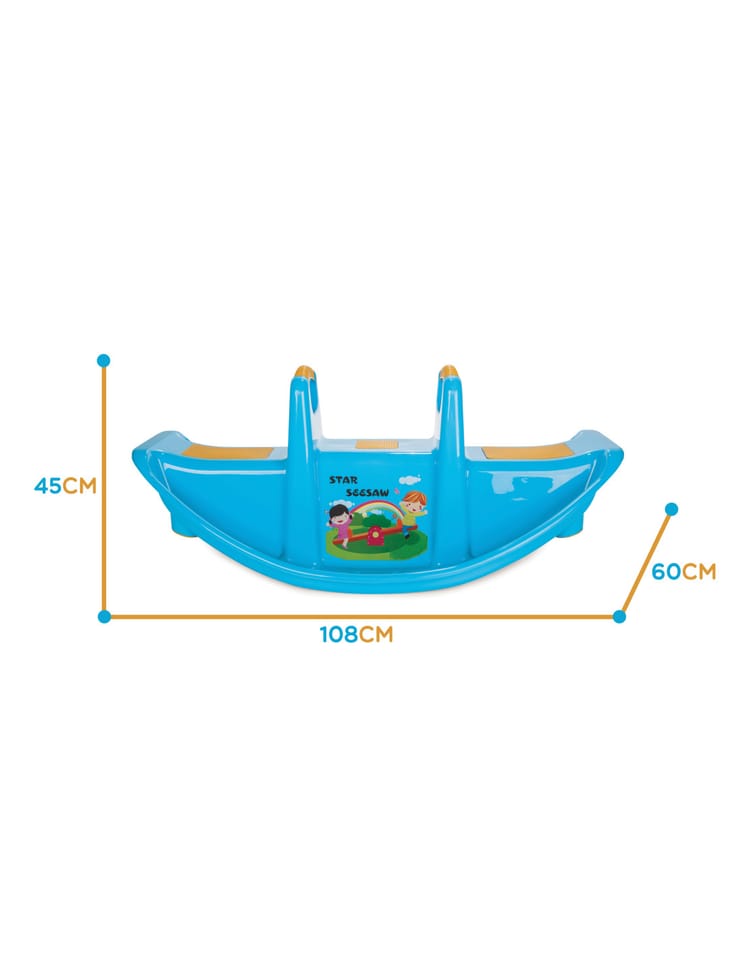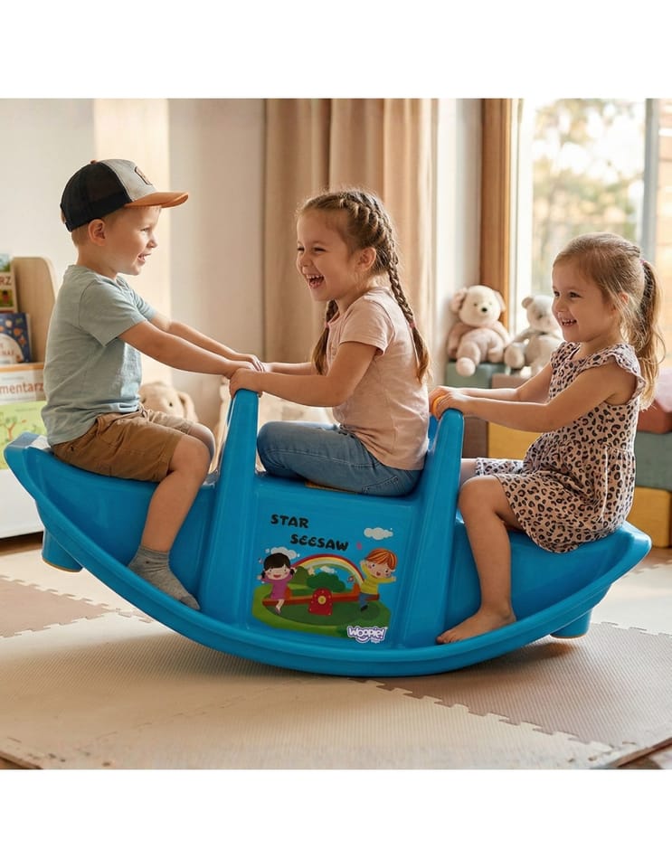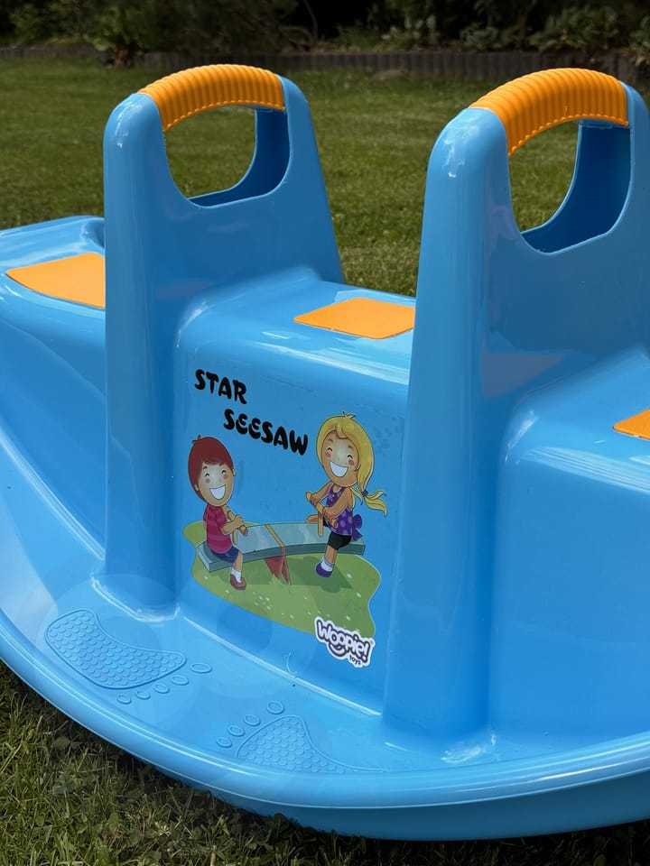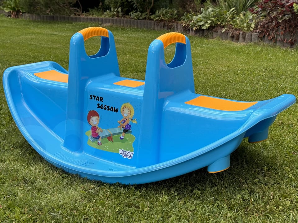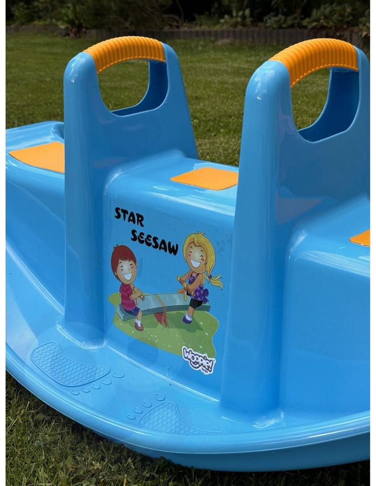 Bujak Wieloosobowy STAR Niebieski marki Woopie jest prawdziwą gwiazdą wśród dzieci! Z bujaka może korzystać maksymalnie troje dzieci jednocześnie, a nawet jedno będzie się świetnie bawić. Gdy dzieci bujają się we dwójkę to dodatkowo rozwija u nich zdolności do współpracy. Bujaczek posiada specjalne nakładki antypoślizgowe na siedzisko oraz chroniące rączki. Bujak sam w sobie dostarcza wiele korzyści dla dzieci. Bujanie samo w sobie uspokaja dziecko oraz rozwija zdolności motoryczne ciała, co jest idealne dla prawidłowego rozwoju. Z huśtawki można korzystać zarówno w domu jak, i na zewnątrz!Charakterystyka: