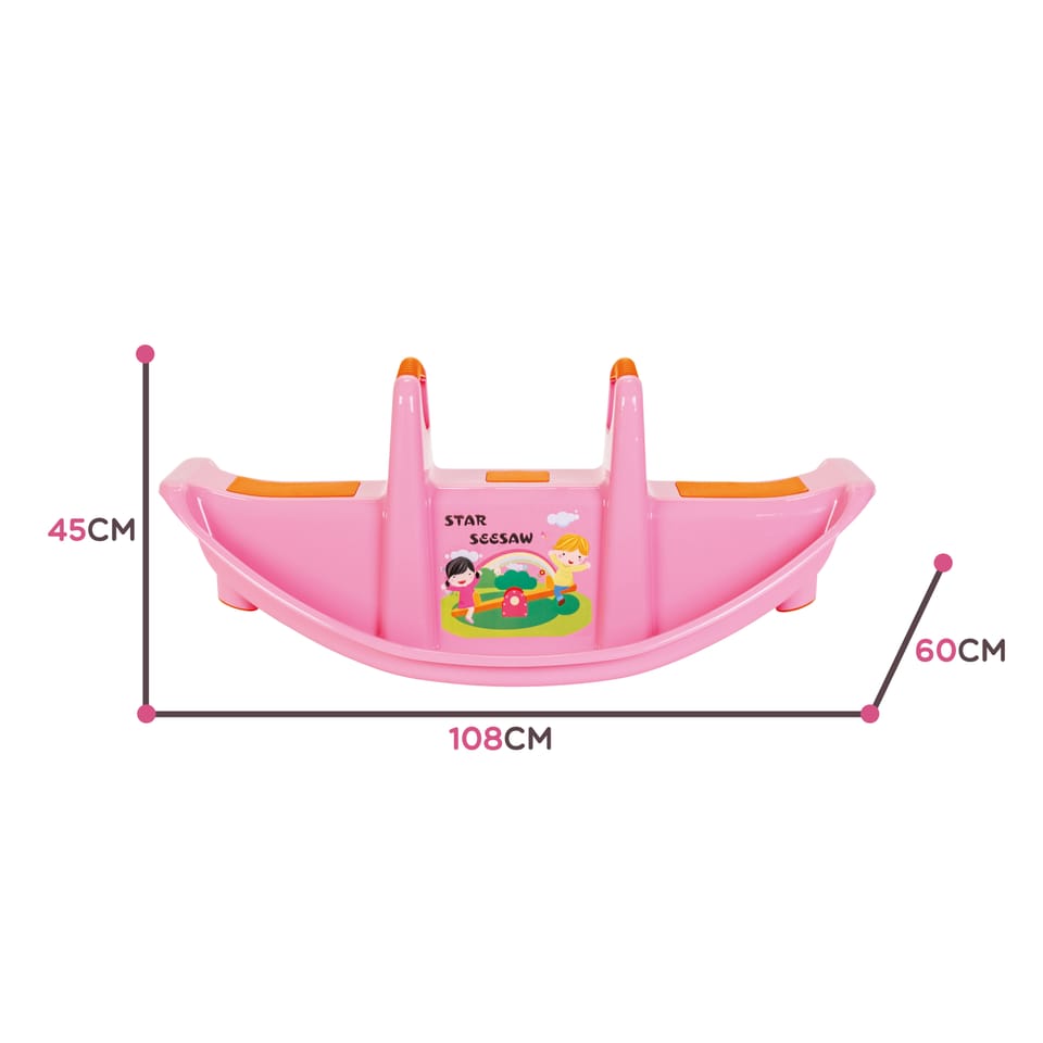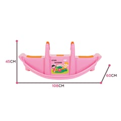 Bujak Wieloosobowy STAR różowy marki Woopie jest prawdziwą gwiazdą wśród dzieci! Z bujaka może korzystać maksymalnie troje dzieci jednocześnie, a nawet jedno będzie się świetnie bawić. Gdy dzieci bujają się we dwójkę to dodatkowo rozwija u nich zdolności do współpracy. Bujaczek posiada specjalne nakładki antypoślizgowe na siedzisko oraz chroniące rączki. Bujak sam w sobie dostarcza wiele korzyści dla dzieci. Bujanie samo w sobie uspokaja dziecko oraz rozwija zdolności motoryczne ciała, co jest idealne dla prawidłowego rozwoju. Z huśtawki można korzystać zarówno w domu jak, i na zewnątrz!Charakterystyka: