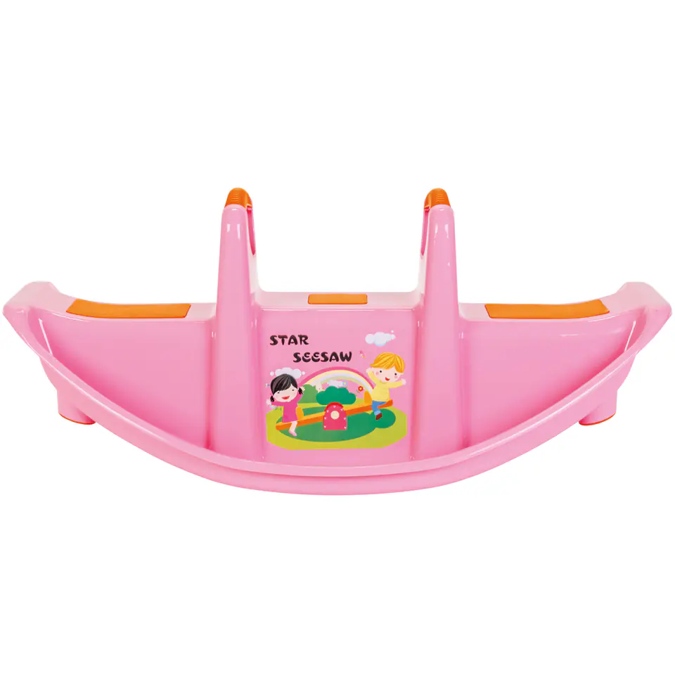 Dwumiejscowy różowy bujak marki Woopie zapewnia nie tylko mnóstwo radości, ale i wspiera rozwój fizyczny maluchów. Przeznaczony dla 1–2 dzieci, idealnie sprawdzi się zarówno w domu, jak i w ogrodzie. Jego ergonomiczny kształt, wygodne siedziska oraz uchwyty do trzymania gwarantują bezpieczną i komfortową zabawę przez długi czas. Produkt wykonano z trwałego, odpornego na warunki atmosferyczne tworzywa, które doskonale znosi intensywną eksploatację. To świetna alternatywa dla klasycznych huśtawek i bujaków – dziecko może się bawić samodzielnie lub w parze, ucząc się przy tym współpracy i równowagi. Lekka konstrukcja umożliwia łatwe przenoszenie produktu w dowolne miejsce. Intensywny różowy kolor w połączeniu z pomarańczowymi akcentami oraz wesołym nadrukiem na froncie przyciągają uwagę dzieci i zachęcają do aktywnej zabawy! Bujanie się na tej huśtawce to nie tylko świetna rozrywka, ale i forma naturalnej gimnastyki, która pozytywnie wpływa na rozwój motoryki dużej, równowagi oraz koordynacji ruchowej.