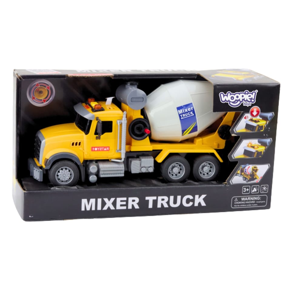 Ta realistyczna betoniarka od marki Woopie z obracanym bębnem, światłami i dźwiękami zapewnia wciągającą zabawę i wspiera rozwój wyobraźni oraz zdolności manualnych. Ręcznie obracany bęben działa jak w prawdziwej maszynie, a efekty świetlne i dźwiękowe – sygnały ostrzegawcze, klakson czy odgłos silnika – dodają realizmu. Żółta, żywa kolorystyka przyciąga uwagę dziecka, a wytrzymały plastik gwarantuje bezpieczeństwo i długotrwałą zabawę. Z bateriami w zestawie zabawka jest gotowa do natychmiastowej akcji na placu budowy!
