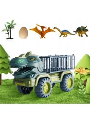 Prezentujemy wyjątkowy Transporter w kształcie dinozaura od marki Woopie — połączenie imponującej ciężarówki z motywem T‑Rex, które przenosi zabawę na zupełnie nowy poziom. Ten duży pojazd to nie tylko transport dla figurek, ale pełnoprawna scena narracyjna, w której dziecko może tworzyć własne przygody jurajskie i motoryzacyjne. Dzięki otwieranym klatkom, detalom w stylu łusek i pazurów oraz przestrzeni ładunkowej, transporter wygląda spektakularnie i angażuje w kreatywną zabawę. Jego zaletą jest solidność konstrukcji i szczegółowe wykonanie. Korpus pojazdu stylizowany jest na skórę dinozaura — z fakturą łusek, efektowną paszczą i grzebieniem grzbietowym. Kolory dobrane są tak, by podkreślać naturalistyczny charakter maszyny, a jednocześnie wyglądać atrakcyjnie w dziecięcym pokoju. Materiały użyte do produkcji są trwałe, odporne na uderzenia i bezpieczne dla dzieci — bez ostrych krawędzi i z zaokrąglonym wykończeniem. Same figurki dinozaurów dołączone do zestawu są lekkie i dopasowane do małych rąk, co pozwala na łatwą manipulację i płynną zabawę. To zabawka, która łączy motyw dinozaura i transportu, stymuluje wyobraźnię, rozwija zdolności manualne, logiczne myślenie i radość z odgrywania własnych historii.