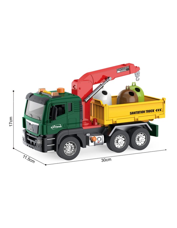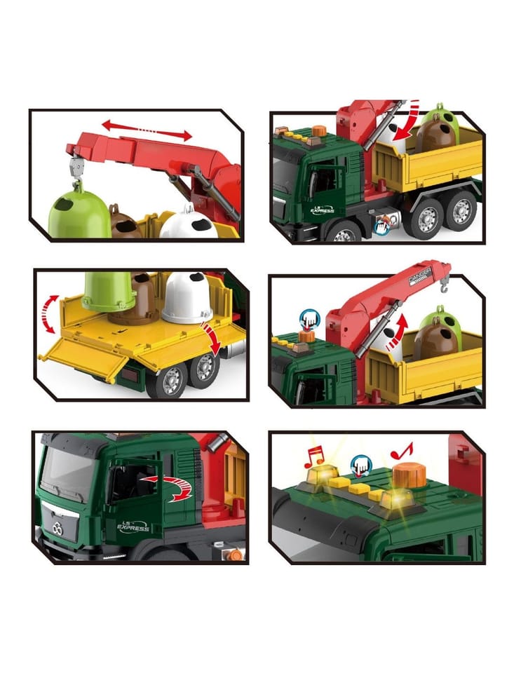Auto Śmieciarka z Dźwigiem – Interaktywna Ciężarówka Komunalna z Koszami na Odpady !