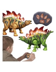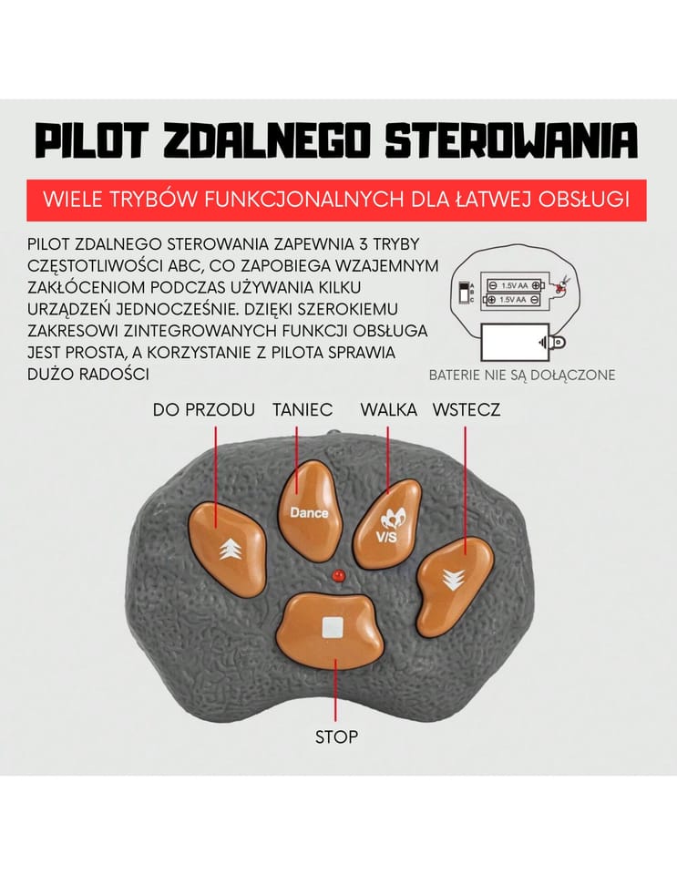 WOOPIE Dinozaur Zdalnie Sterowany RC Robot Stegozaur to niesamowita interaktywna propozycja dla każdego małego fana prehistorycznych stworzeń. Ta realistyczna zabawka pozwala dziecku przenieść się w czasie, oferując pełną kontrolę nad ruchami i zachowaniem majestatycznego gada za pomocą ergonomicznego pilota. Robot potrafi poruszać się do przodu i do tyłu, niezwykle precyzyjnie naśladując chód prawdziwego stegozaura. W trakcie poruszania się jego głowa i ogon płynnie kołyszą się, co zdecydowanie potęguje realizm i wciąga w zabawę. Zabawka została wyposażona w imponujące efekty świetlne i dźwiękowe, które przykuwają uwagę na długie godziny. Oczy oraz charakterystyczne płyty na grzbiecie stegozaura intensywnie podświetlają się, a wbudowany głośnik emituje potężne, symulowane ryki, przypominające naturalne odgłosy dzikich dinozaurów. Niezwykłą atrakcją są zaprogramowane dodatkowe funkcje – stegozaur potrafi tańczyć do zabawnych sekwencji ruchów oraz posiada dedykowany tryb walki, idealny do pełnej emocji zabawy z rówieśnikami. System operuje na trzech trybach częstotliwości (ABC), co pozwala na bezkolizyjną zabawę kilkoma różnymi dinozaurami w tym samym czasie.
