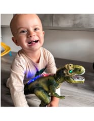 WOOPIE Dinozaur Zdalnie Sterowany RC Robot T-Rex to niezwykła, interaktywna zabawka, która przeniesie każde dziecko w ekscytujący świat prehistorycznych drapieżników. Ten zaawansowany technologicznie robot w kształcie potężnego tyranozaura zapewnia mnóstwo dynamicznej zabawy. Sterowanie odbywa się za pomocą wygodnego, intuicyjnego pilota w kształcie łapy dinozaura. T-Rex potrafi poruszać się do przodu i do tyłu, a dzięki wbudowanym funkcjom staje się idealnym towarzyszem codziennych przygód. Interaktywny drapieżnik został wyposażony w efekty dźwiękowe i świetlne. Podczas zabawy wydaje z siebie potężny, realistyczny ryk, a jego elementy świecą, co potęguje wrażenia, zwłaszcza w ciemniejszych pomieszczeniach. Zabawka posiada dodatkowe, zaprogramowane tryby: tryb tańca (Dance) oraz tryb walki (V/S), które urozmaicają rozgrywkę. Ruchome elementy nadają zabawce realizmu, pobudzając dziecięcą wyobraźnię do tworzenia własnych jurajskich opowieści.