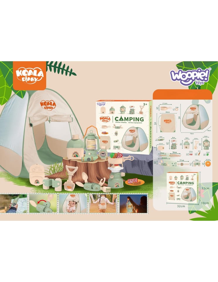 Zestaw kempingowy marki Woopie to idealna propozycja dla małych odkrywców, którzy uwielbiają kreatywną zabawę i przygody na świeżym powietrzu oraz w domu. Dzięki realistycznym akcesoriom, lekkiej konstrukcji i łatwemu montażowi, każde dziecko może poczuć się jak prawdziwy podróżnik i przeżyć niezapomniane chwile podczas zabawy w biwakowanie.