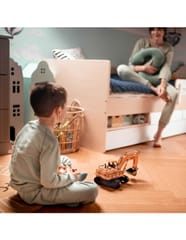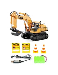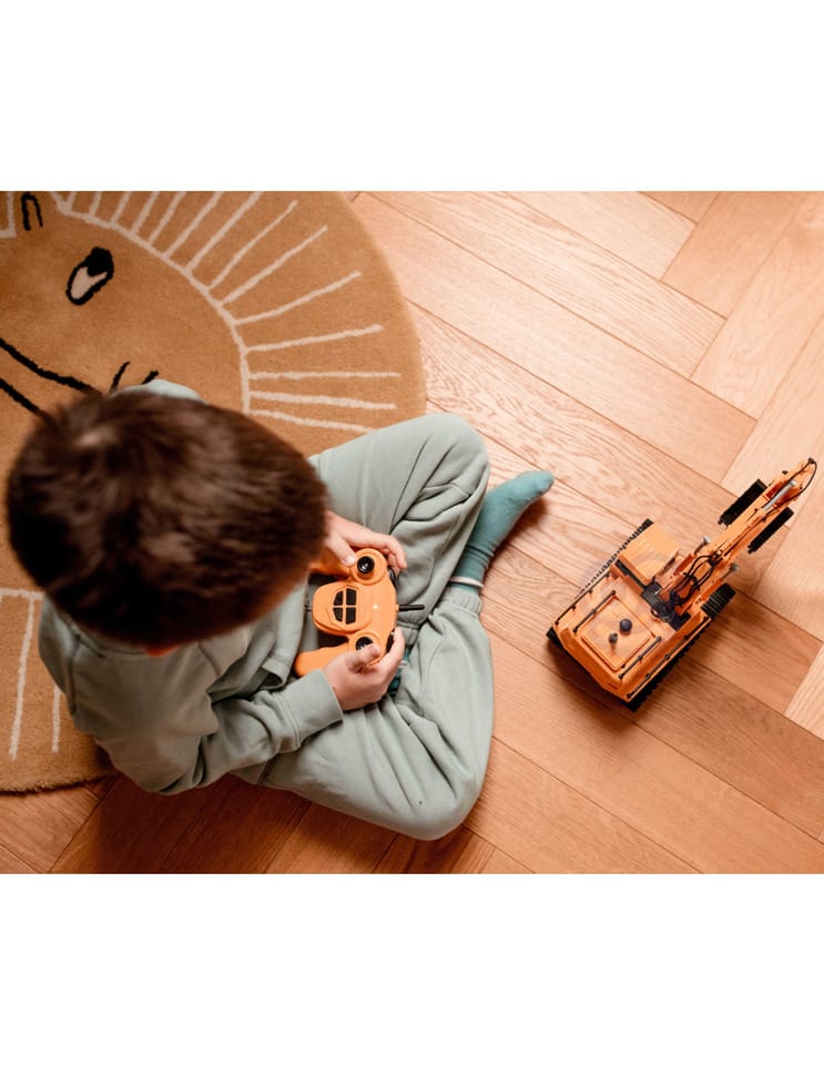 Koparka zdalnie sterowana marki WOOPIE to idealna zabawka dla każdego małego fana maszyn budowlanych. Pojazd stworzony został z wysokiej jakości tworzywa, posiada także szerokie gumowe gąsienice, dzięki którym zabawka poradzi sobie nawet na najbardziej wymagającym terenie. Ponadto podczas zabawy w domu nie porysuje podłogi. Wykonana z przywiązaniem do najdrobniejszych szczegółów jest doskonałą imitacją prawdziwej maszyny w skali 1:24. Spraw aby pokój Twojego dziecka zamienił się w prawdziwy plac budowy. Pojazd charakteryzuje się wyjątkową dokładnością, a każdy szczegół jest dopracowany. W kabinie znajduje się kierownica oraz wszystkie dźwignie potrzebne do sterowania maszyną. Dodatkowo wyrazistości zabawce nadają wyjątkowo intensywne kolory. Koparka posiada gumowe, solidne gąsienice. Pilot, który posiada częstotliwość 2.4 GHz zdecydowanie wyróżnia zabawkę na tle innych. Pojazd rewelacyjnie spełnia rolę dydaktyczną. Jest to świetny sposób na zabawę w grupie – z rodzicami bądź rówieśnikami. Do zestawu dołączono również 2 znaki ostrzegawcze oraz 2 pachołki, które pozwolą dziecku na wytoczenie terytorium i uatrakcyjnienie zabawy.