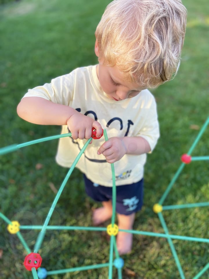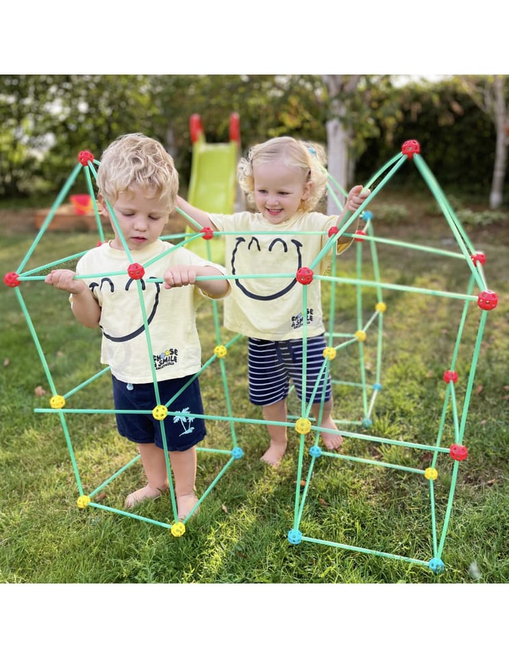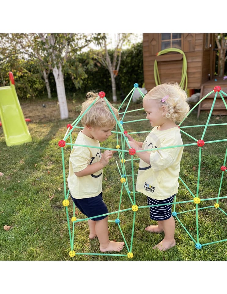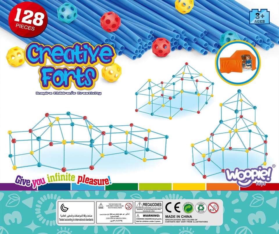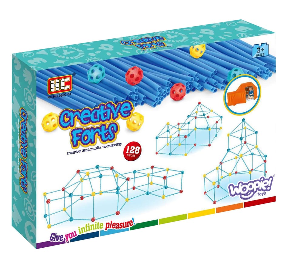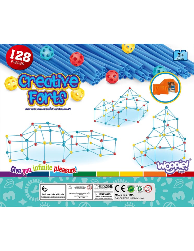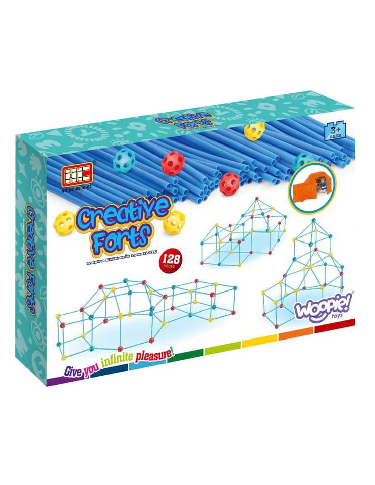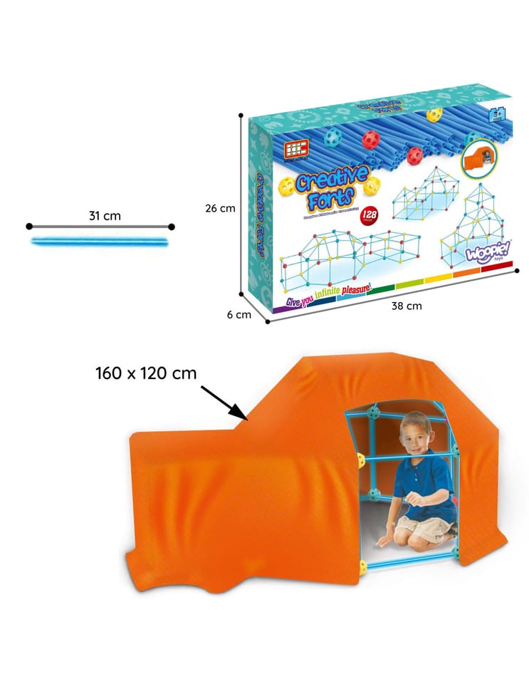 Zestaw Konstrukcyjny od marki WOOPIE obudzi wielkiego konstruktora w Twoim dziecku! Zestaw zawiera 128 elementów w tym rurki łączniki i materiał do okrycia konstrukcji. Elementy umożliwiają na połączenie ich w przestrzenną budowlę jak namiot, przykryty materiałem. Zestaw pozwala na kreatywną zabawę w domu jak i na świeżym powietrzu.