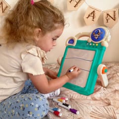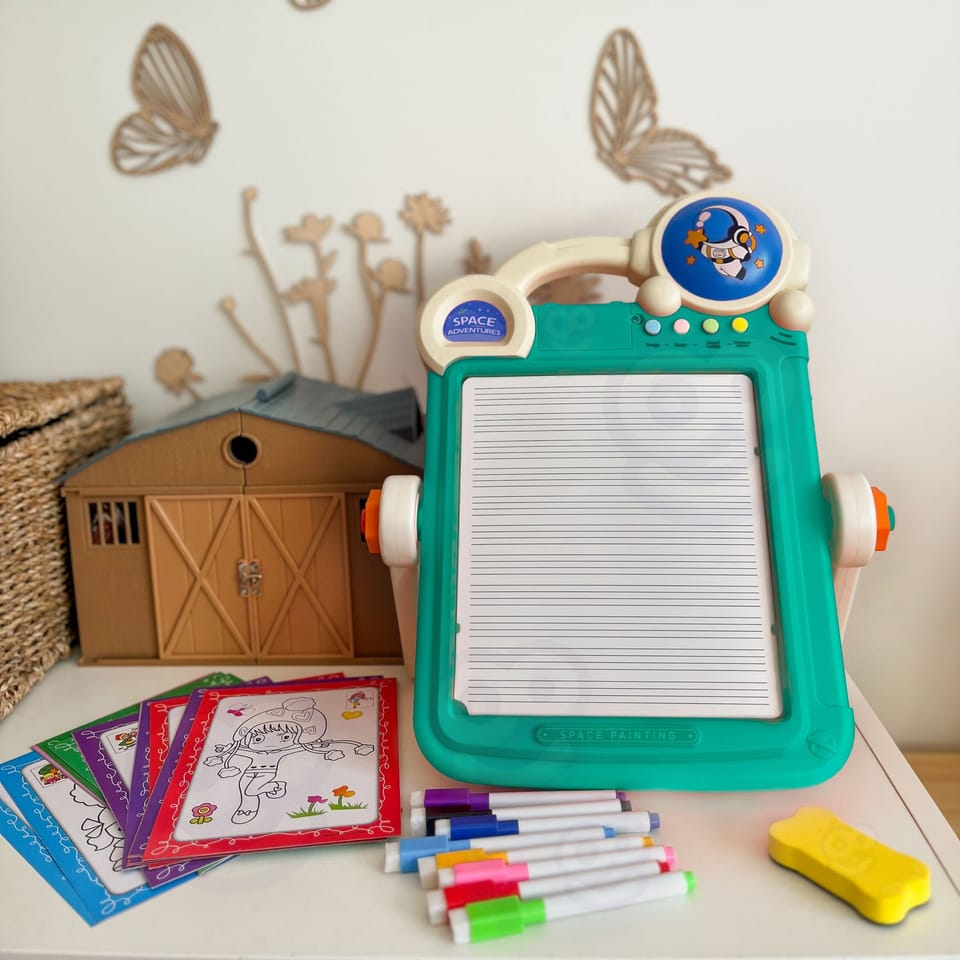 Szukasz zabawki, która będzie nie tylko bawić, ale również uczyć? Oto wyjątkowa edukacyjna tablica 2w1 marki WOOPIE – kreatywne centrum zabawy dla dzieci. Zabawka łączy funkcję tablicy do rysowania kolorowymi pisakami oraz planszy do układania klocków typu Tetris. Tablica do rysowania zawiera 8 flamastrów, gąbkę do zmazywania oraz 18 dwustronnych zmazywalnych kart do kolorowania lub pisania. Druga strona tablicy to zabawna układanka Tetris która zaciekawi każde dziecko, rozwinie wyobraźnię i kreatywne myślenie. Kolorowe klocki można układać pionowo lub na płasko tworząc ciekawe figury i obrazki lub oddzielne budowle 3D. Zabawę umilą 4 wbudowane przyciski z muzyką. Analogiczny zegar na obudowie pomoże z nauką odczytywania godziny.