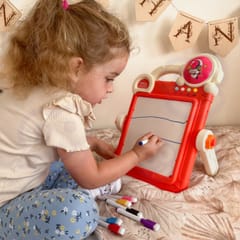 Szukasz zabawki, która będzie nie tylko bawić, ale również uczyć? Oto wyjątkowa edukacyjna tablica 2w1 marki WOOPIE – kreatywne centrum zabawy dla dzieci. Zabawka łączy funkcję tablicy do rysowania kolorowymi pisakami oraz planszy do układania klocków typu Tetris. Tablica do rysowania zawiera 8 flamastrów, gąbkę do zmazywania oraz 18 dwustronnych zmazywalnych kart do kolorowania lub pisania. Druga strona tablicy to zabawna układanka Tetris która zaciekawi każde dziecko, rozwinie wyobraźnię i kreatywne myślenie. Kolorowe klocki można układać pionowo lub na płasko tworząc ciekawe figury i obrazki lub oddzielne budowle 3D. Zabawę umilą 4 wbudowane przyciski z muzyką. Analogiczny zegar na obudowie pomoże z nauką odczytywania godziny.