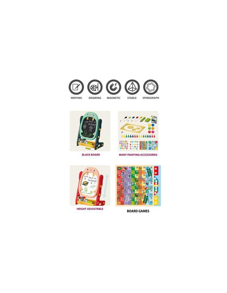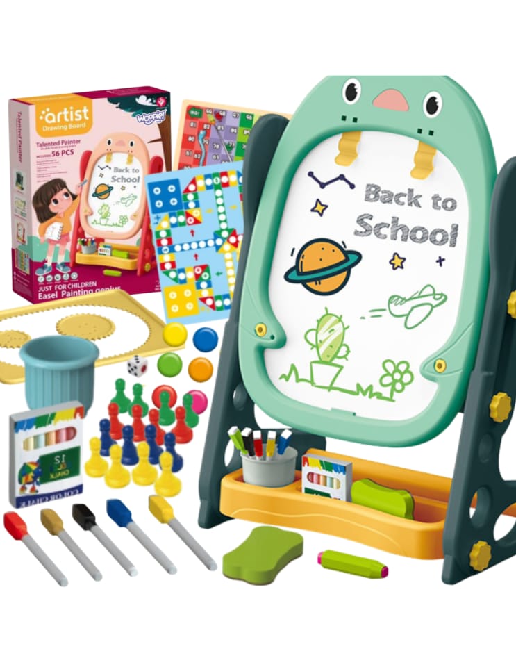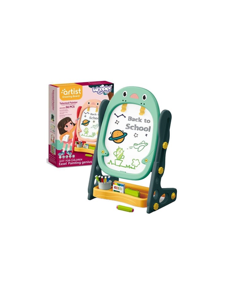 Dwustronna Tablica Magnetyczna do Rysowania od marki WOOPIE to wszechstronne narzędzie do nauki i pogłębiania zdolności artystycznych. Zestaw zawiera pełen pakiet akcesoriów do wszechstronnego użytkowania. Tablica jest prosta w montażu i dodatkowo posiada regulacje wysokości, dzięki czemu można ja dopasować do każdego dziecka. Zabawka jest niezbędna do codziennego rozwoju dziecka.