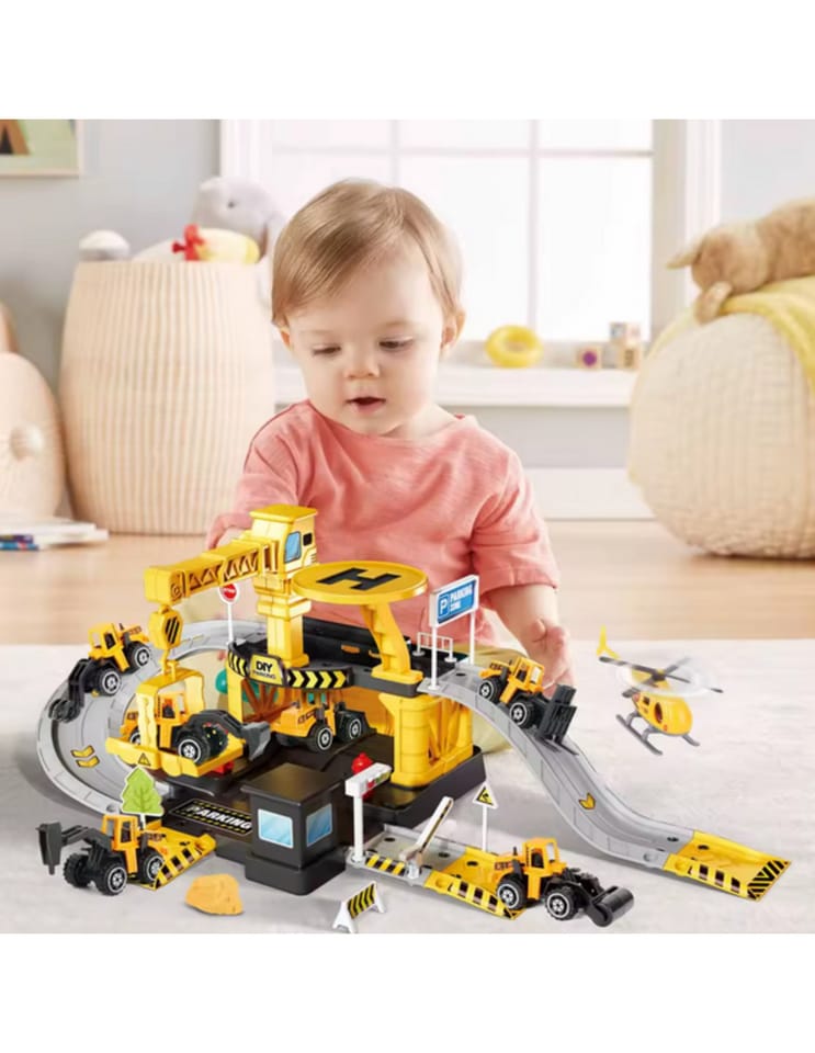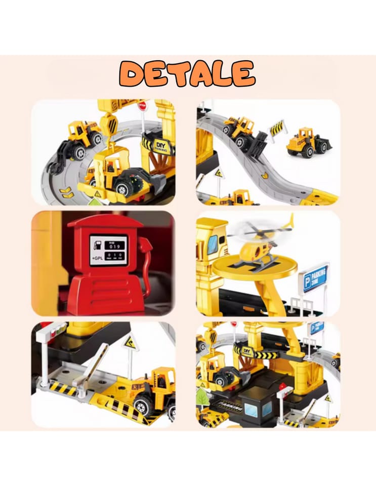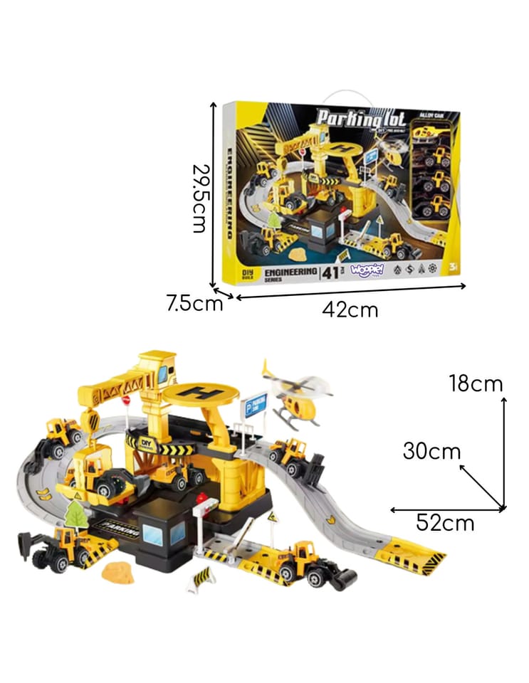 Parking firmy budowlanej od marki Woopie z akcesoriami i pojazdami to fantastyczny zestaw tematyczny dla każdego małego miłośnika motoryzacji i prac konstrukcyjnych, który zamieni pokój dziecka w prawdziwy plac budowy! Zabawka zachwyca bogactwem detali, ilością elementów, żywą kolorystyką i wieloma możliwościami zabawy. Dwupoziomowy parking z rampami, lądowiskiem dla helikoptera i licznymi akcesoriami pozwala dziecku na tworzenie własnych scenariuszy zabawy, ograniczonymi tylko wyobraźnią. Trzy metalowe samochodziki i helikopter pozwolą wykorzystać każdą z funkcji garażu i pozwolą na zabawę w gronie rodzeństwa lub przyjaciół oraz wcielenie się w postać małego konstruktora.