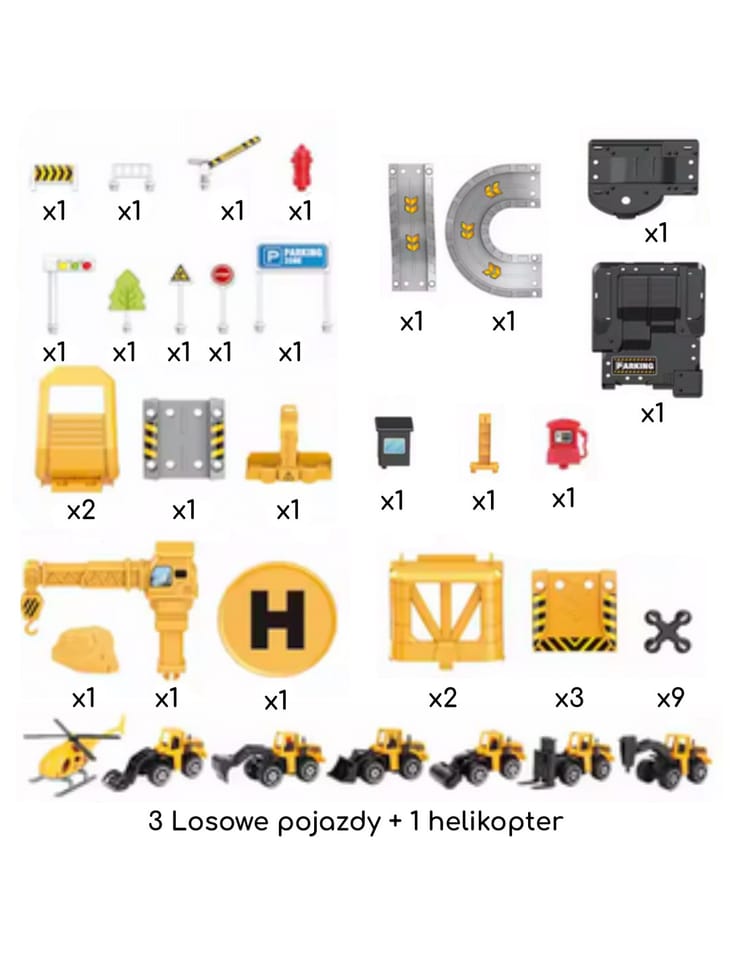 - - W zestawie pojazdy budowlane i helikopter – do odgrywania różnorodnych scenariuszy