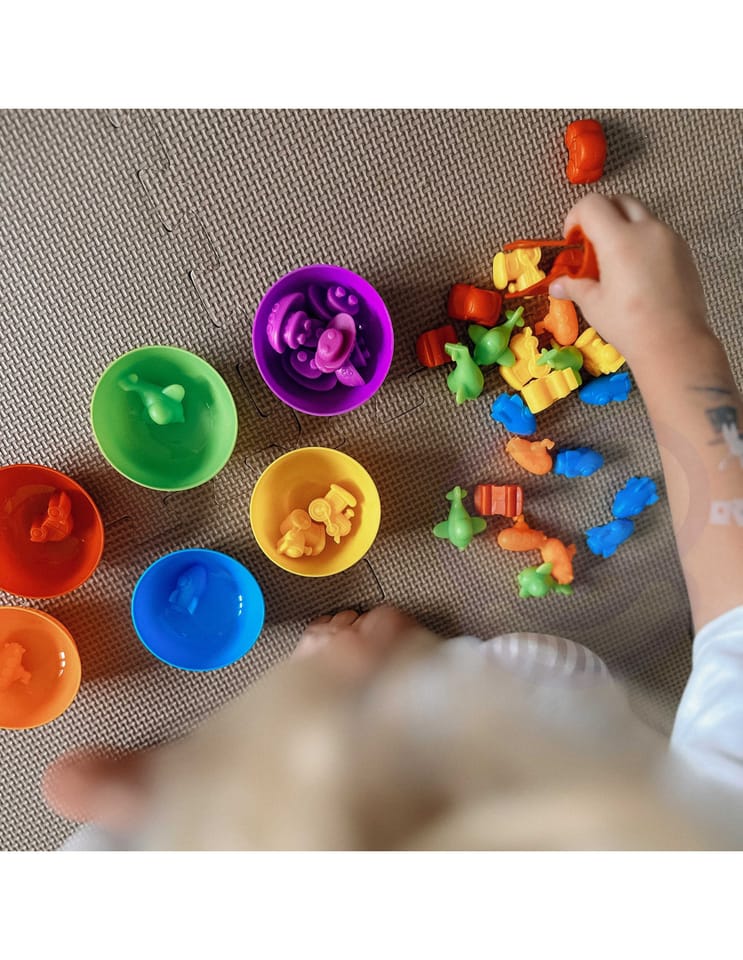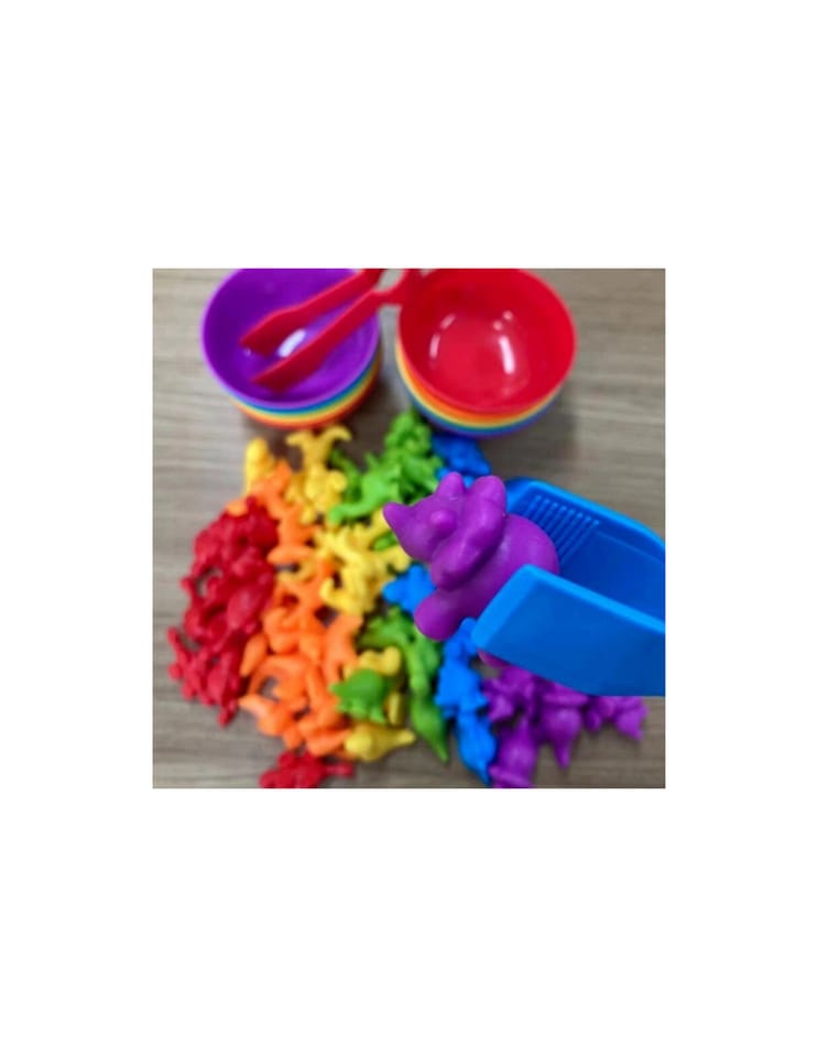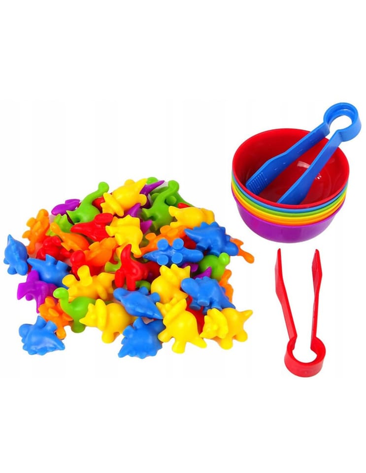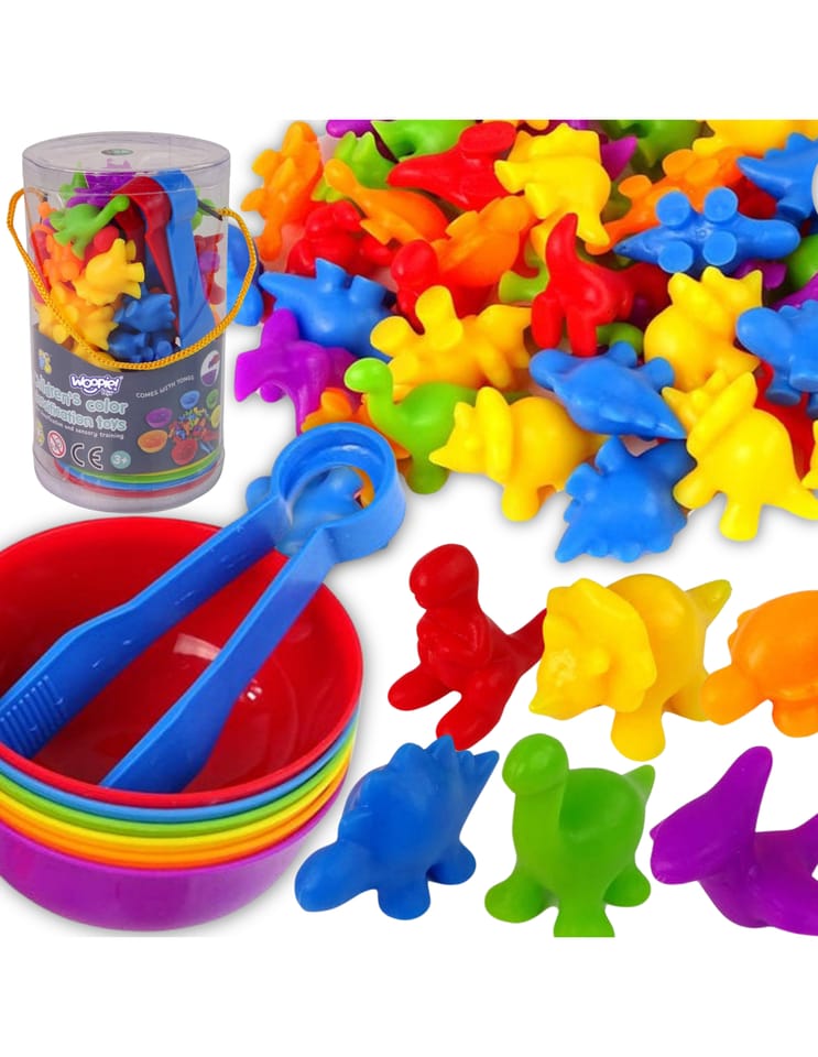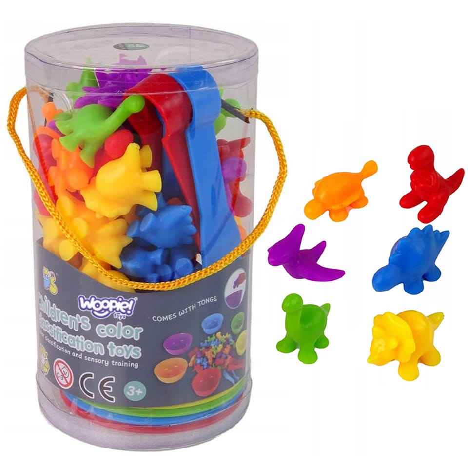 Zabawka Edukacyjna Sorter Dinozaury od marki WOOPIE to prosta, ale skuteczna pomoc w nauce i zabawie. Gra polega na wysypaniu wszystkich figurek na środek, a następnie za pomocą szczypczyków przeniesienie każdego elementu do odpowiedniej miseczki. Dodatkowo zabawka ma wiele edukacyjnych możliwości wykorzystania. Poza nauką kolorów, figurki można użyć, również do nauki liczenia. Zestawem mogą bawić się jednocześnie dwoje dzieci i uczyć się dzielenia oraz współpracy lub rywalizacji na czas. Zestaw jest super alternatywą dla standardowego sposobu uczenia - nauka przez zabawę!