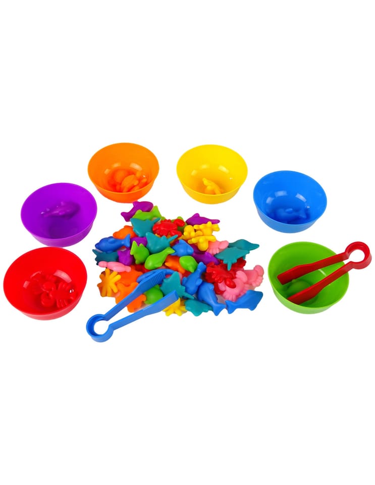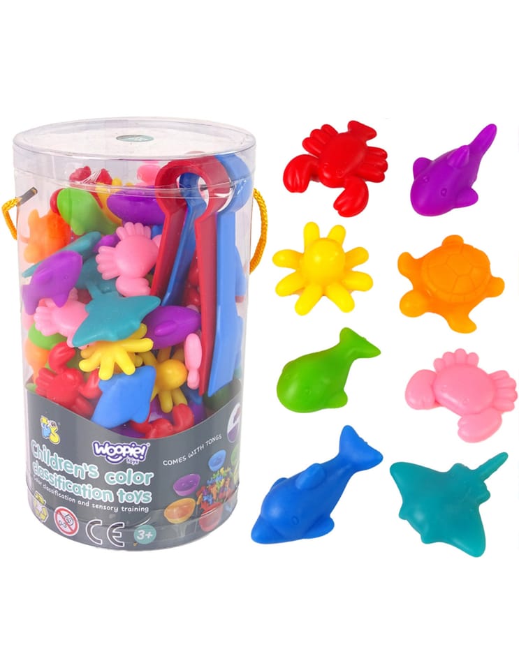 Zabawka Edukacyjna Morska Kraina od marki WOOPIE to prosta, ale skuteczna pomoc w nauce i zabawie. Gra polega na wysypaniu wszystkich figurek na środek, a następnie za pomocą szczypczyków przeniesienie każdego elementu do odpowiedniej miseczki. Dodatkowo zabawka ma wiele edukacyjnych możliwości wykorzystania. Poza nauką kolorów, figurki można użyć, również do nauki liczenia. Zestawem mogą bawić się jednocześnie dwoje dzieci i uczyć się dzielenia oraz współpracy lub rywalizacji na czas. Zestaw jest super alternatywą dla standardowego sposobu uczenia - nauka przez zabawę!